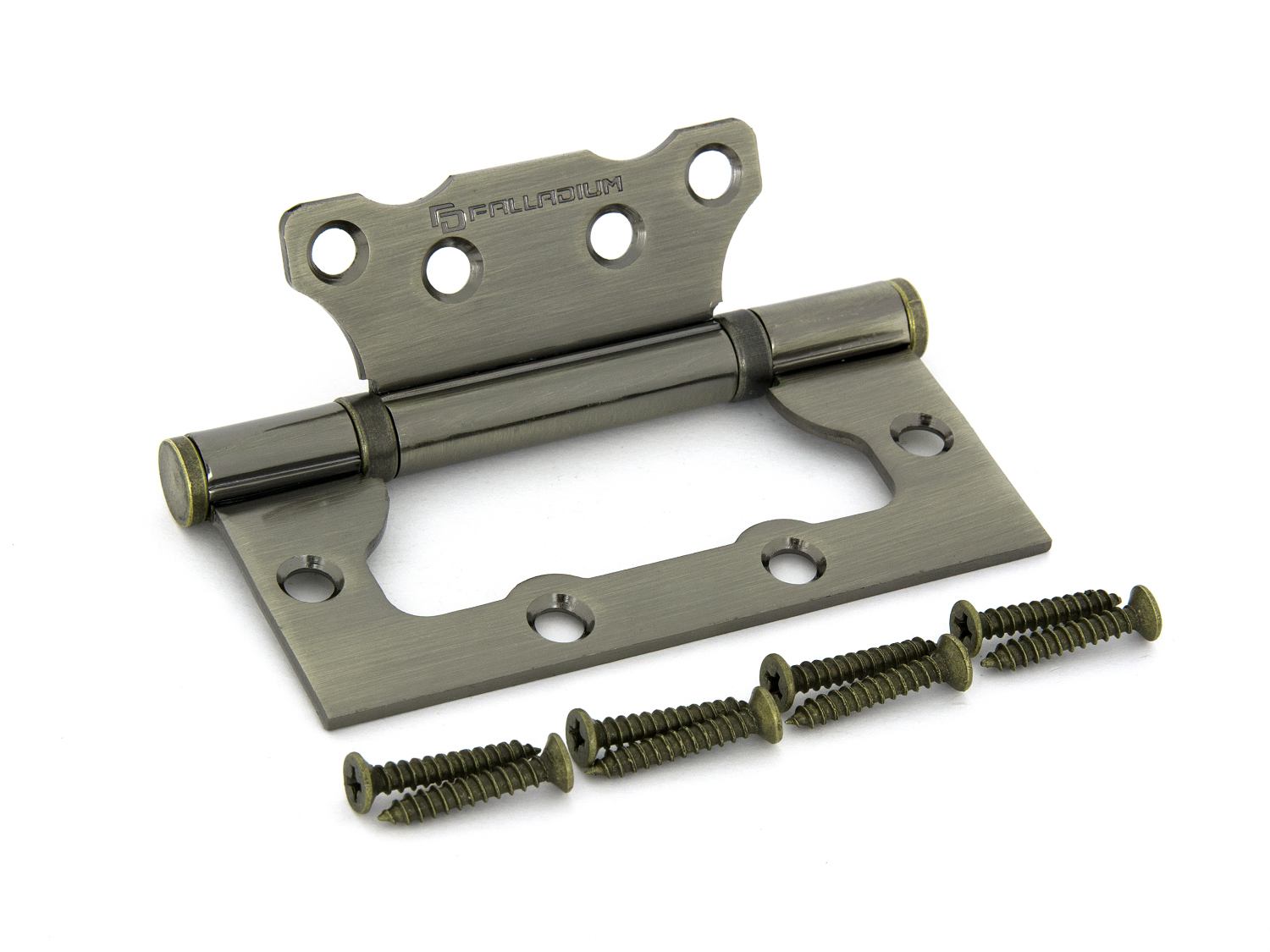 Комплектность: дверная петля накладная Палладиум 2BB-100 (1 шт.), шурупы в цвет (8 шт.).