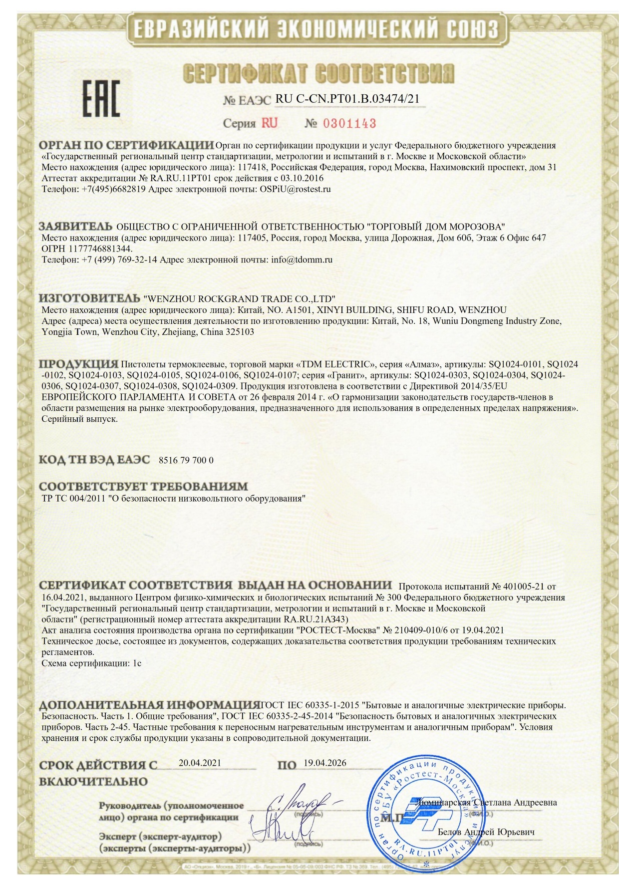 Комплект: пистолет, зарядное устройство, 2 клеевых стержня.