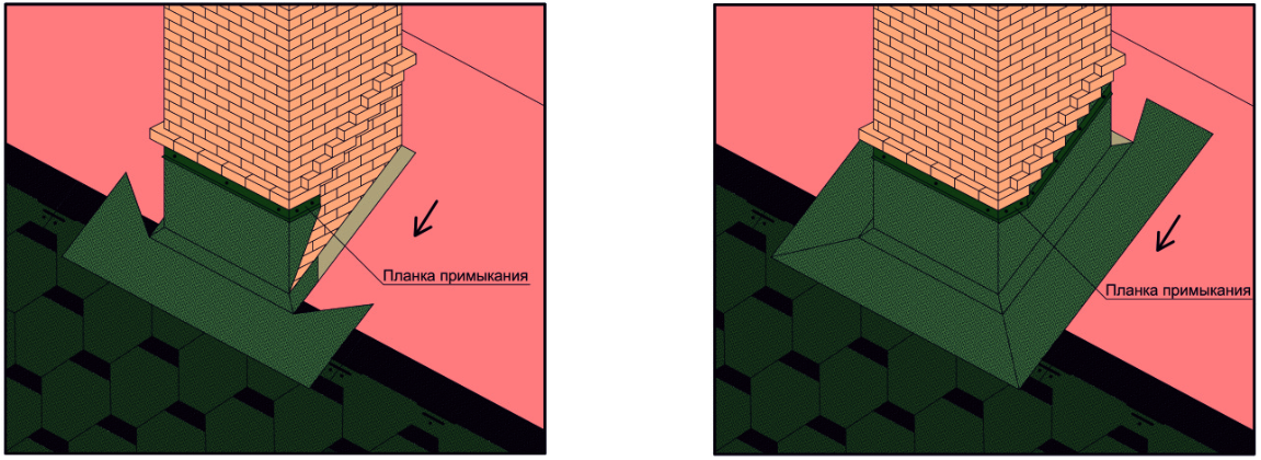 Планка примыкания для гибкой черепицы используется для выполнения узла примыкания угла кровли к стене или к трубе.