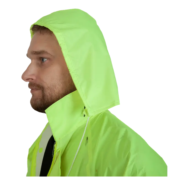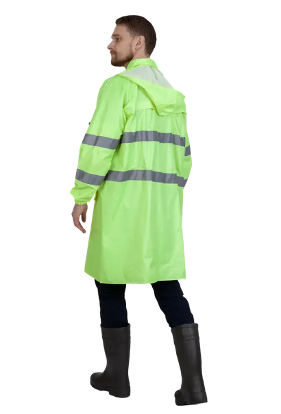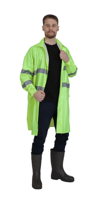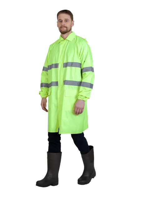 Плащ-дождевик сигнальный светоотражающий – служит для защиты человека от различного вида механических воздействий: атмосферных осадков, ветра и загрязнений. Идеален для применения в условиях повышенной влажности при проведении строительных и других работ на улице в условиях пониженной видимости. Оснащен капюшоном и светоотражающими полосами. Застегивается на молнию.