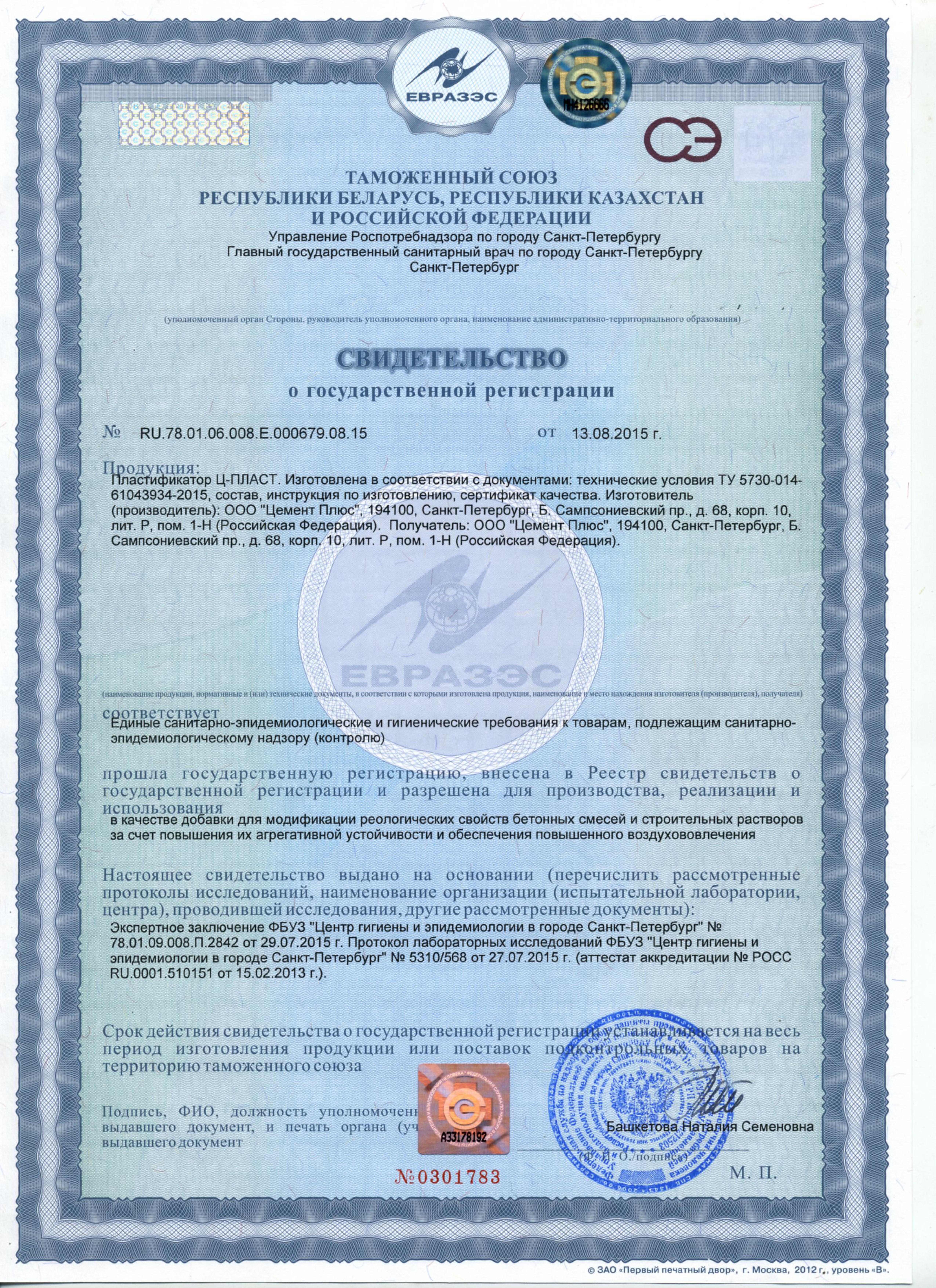 Не допускается одновременное использование Ц-пласта с другими добавками.