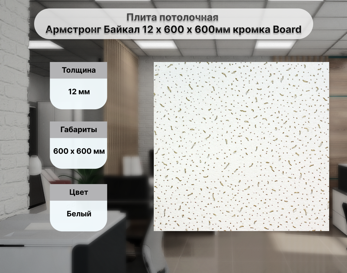 Плита потолочная Армстронг Байкал 12 х 600 х 600мм кромка Board