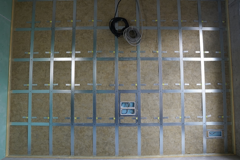 Чаще всего используется в качестве среднего слоя в каркасных звукоизоляционных конструкциях: в возводимых перегородках, облицовках и подвесных потолках.