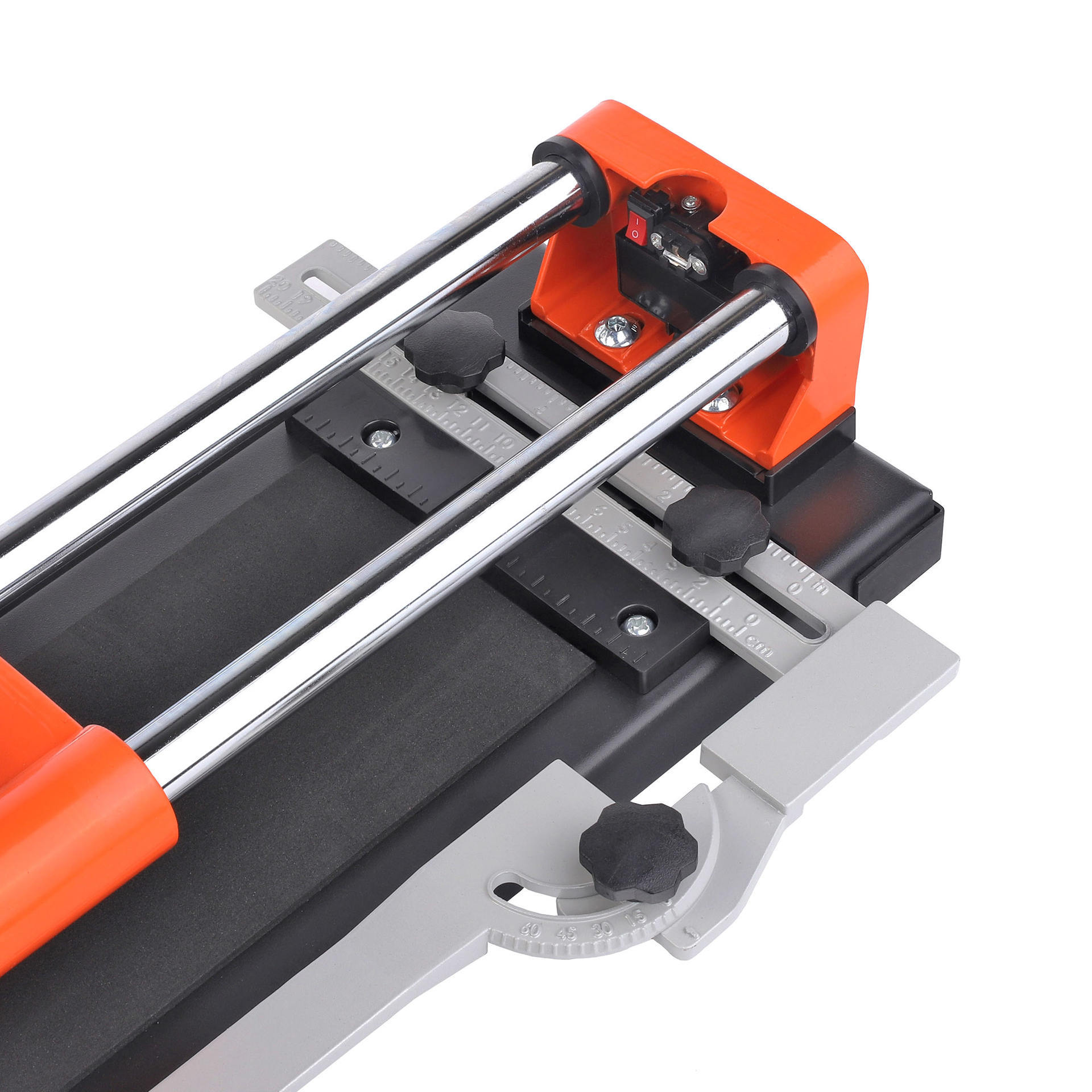 5. Линейка-угольник для точной резки: - Модель оснащена линейкой-угольником для резки плитки под углом 30°, 45° и 60°, а также регулировкой размера и дополнительной фиксацией заготовки. Это позволяет выполнять точный рез вне зависимости от выбранного материала.