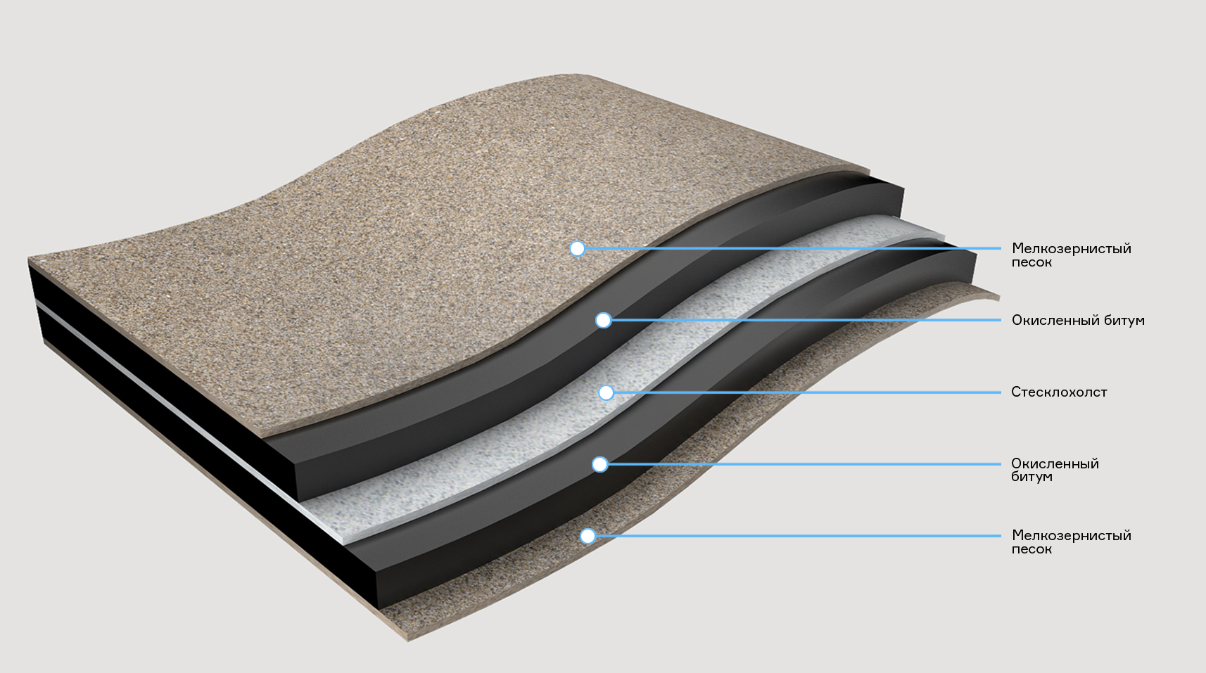 Основой подкладочного ковра Standart явялется стеклохолст, верхний и нижний слой - мелкозернистая посыпка (песок). Ковер с механической фиксацией - крепится к основанию оцинкованными ершеными гвоздями.