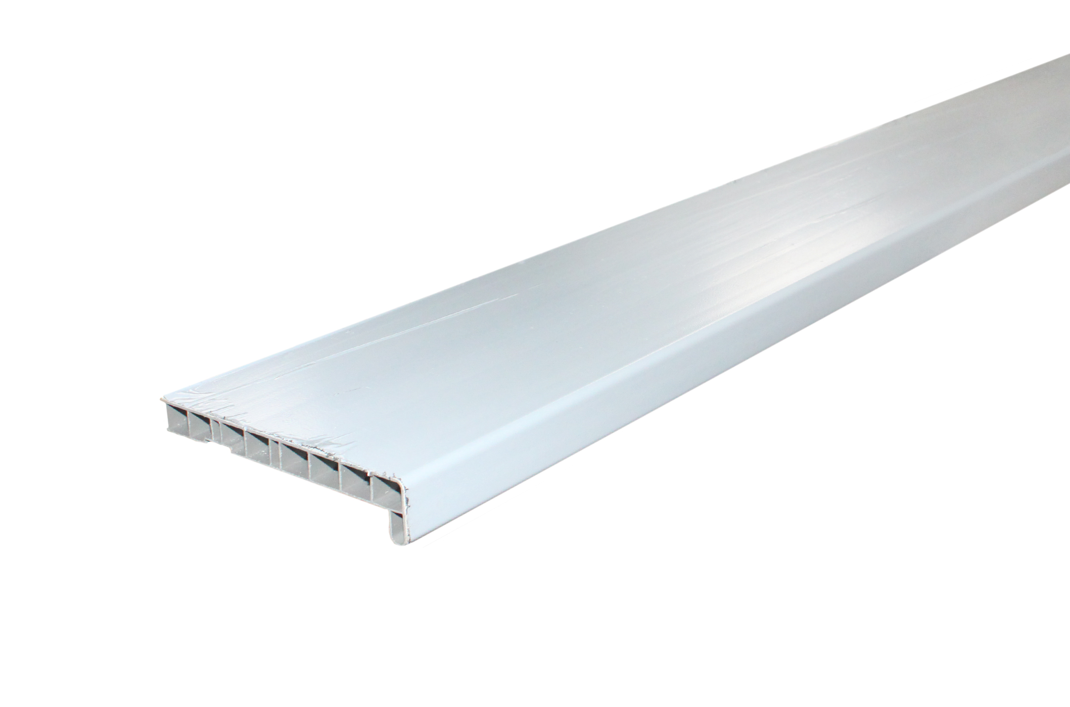 Конструкция подоконника представляет собой полую пластиковую доску с вертикальными рёбрами жёсткости.