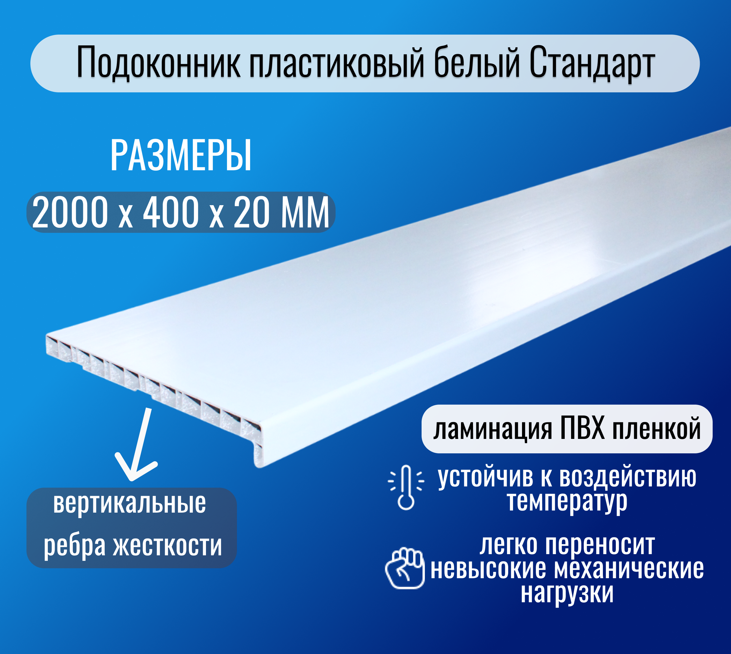 Подоконник пластиковый белый Стандарт 400 х 2000мм