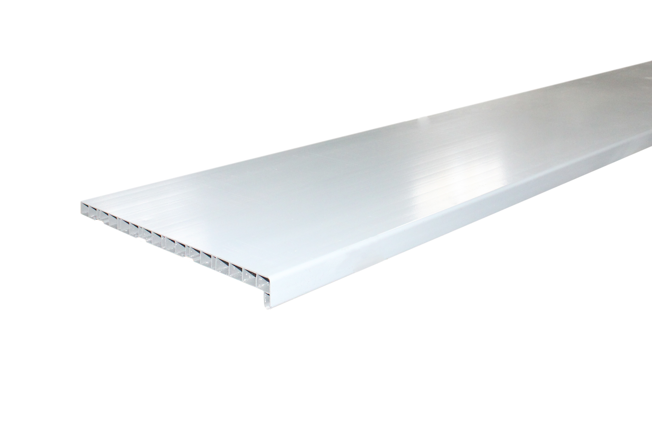Конструкция подоконника представляет собой полую пластиковую доску с вертикальными рёбрами жёсткости.