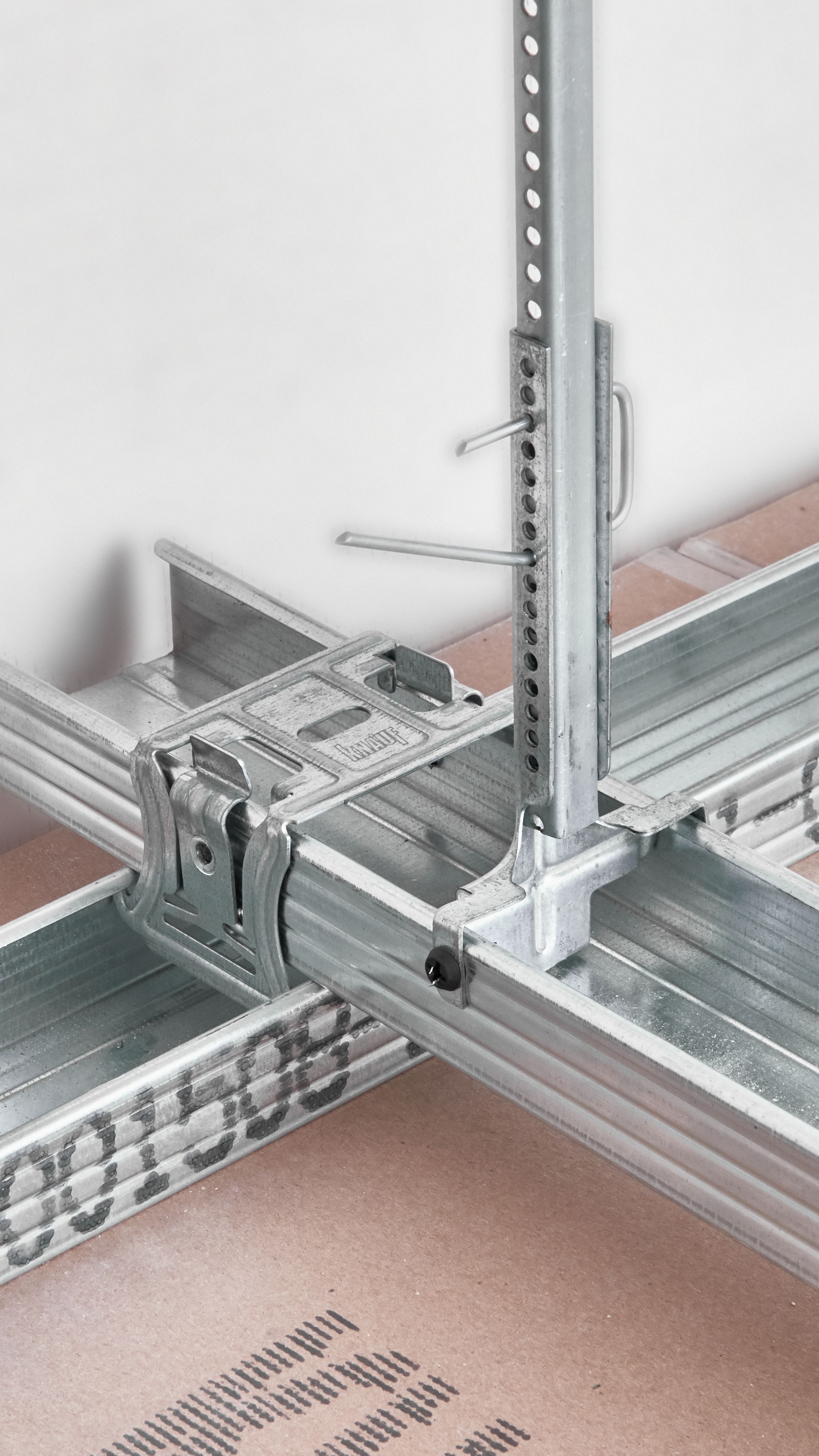 Подвес Нониус КНАУФ нижняя часть предназначен для закрепления потолочных профилей ПП 60х27 к несущему основанию. Монтируется в сочетании с верхней частью нониус подвеса, крепится к профилю для гипсокартона.
