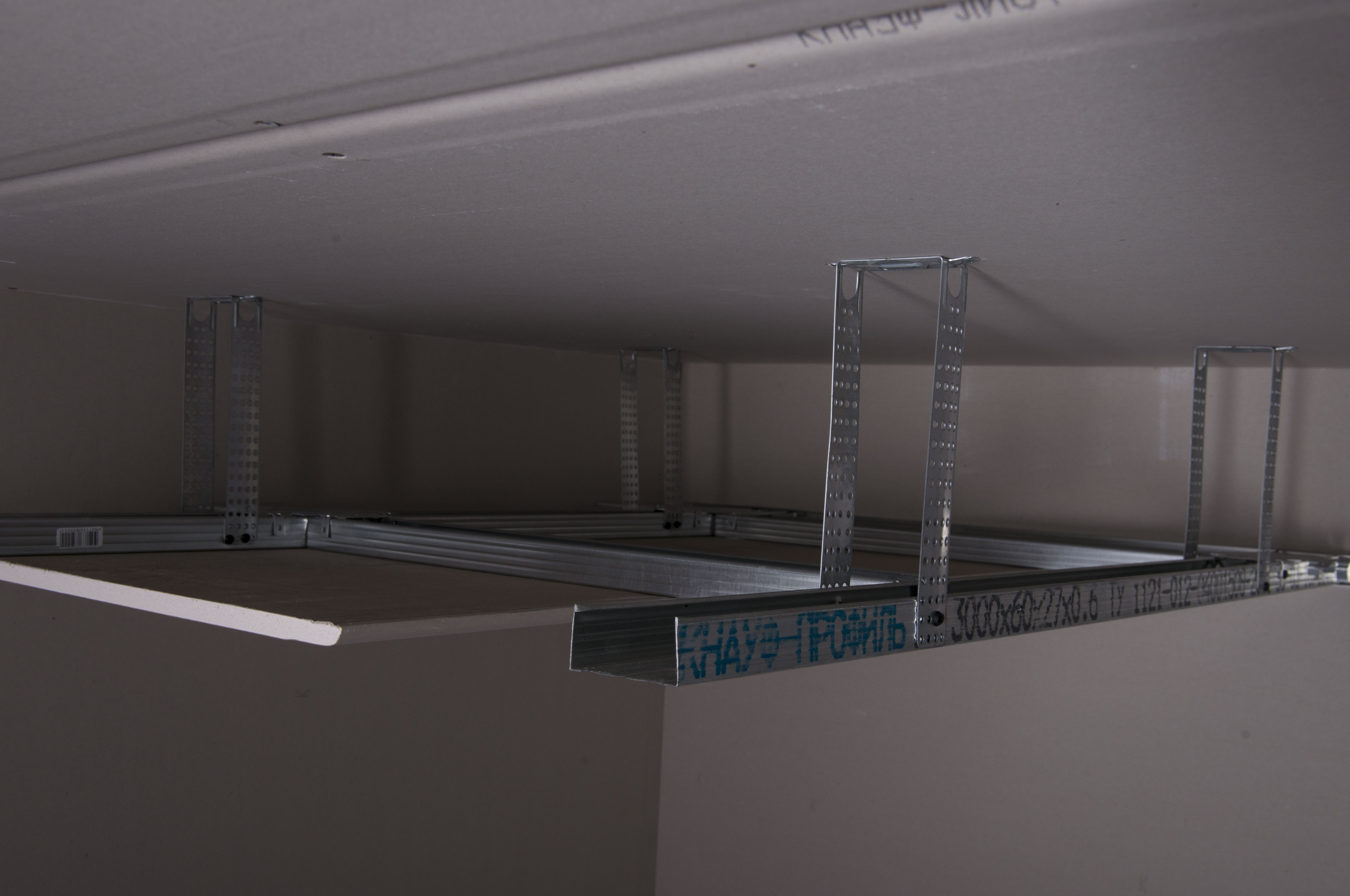 Изделие изготовлено из оцинкованной стали. Позволяет снизить уровень потолка максимум на 10-11см.