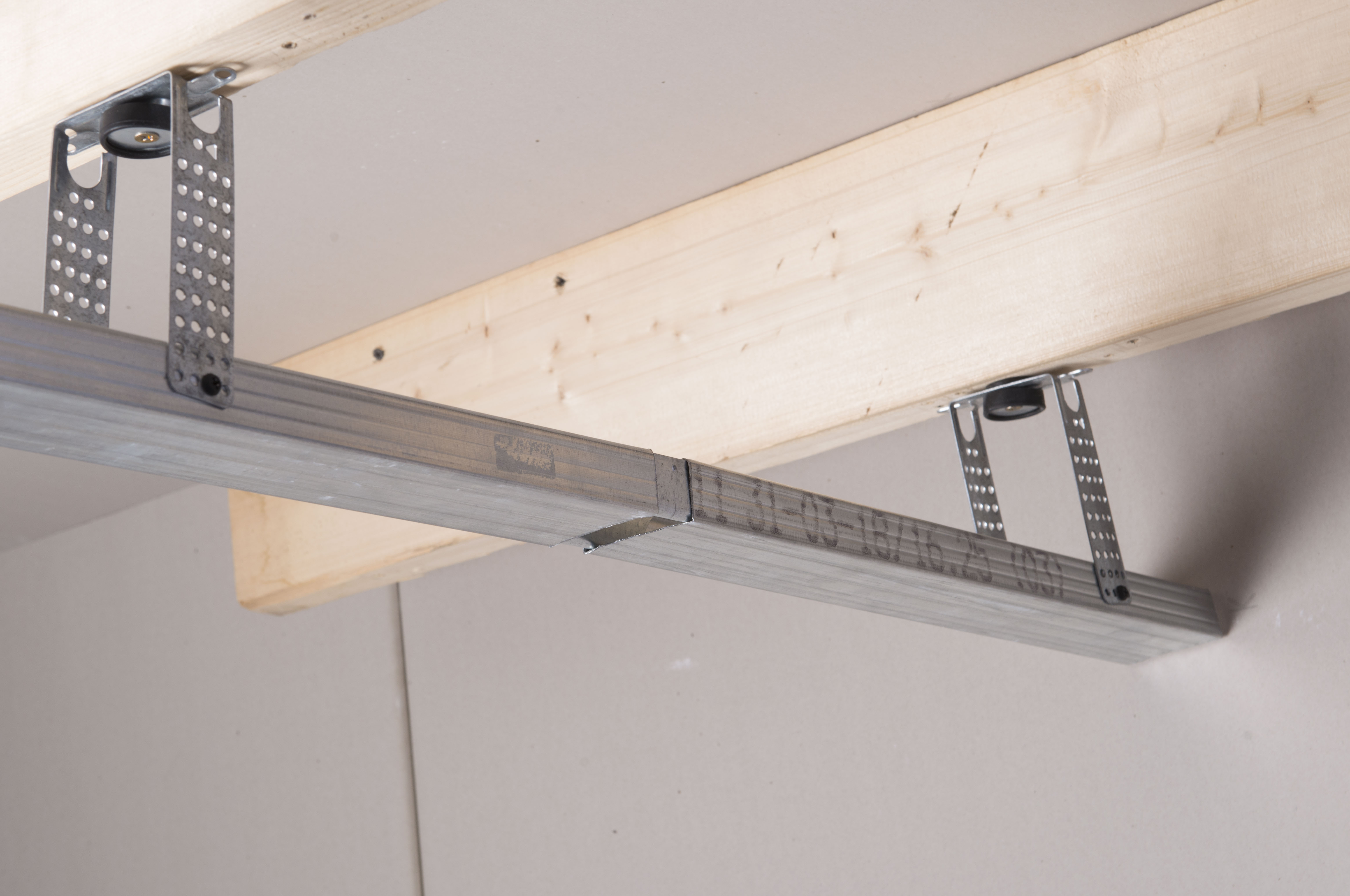 антивибрационный подвес позволяет уменьшить ударный шум который передается по конструкциям. если вы живете в многоквартирном доме не на последнем этаже, то лучше взять подвес для потолочных каркасов антивибрационный производителя кнауф.