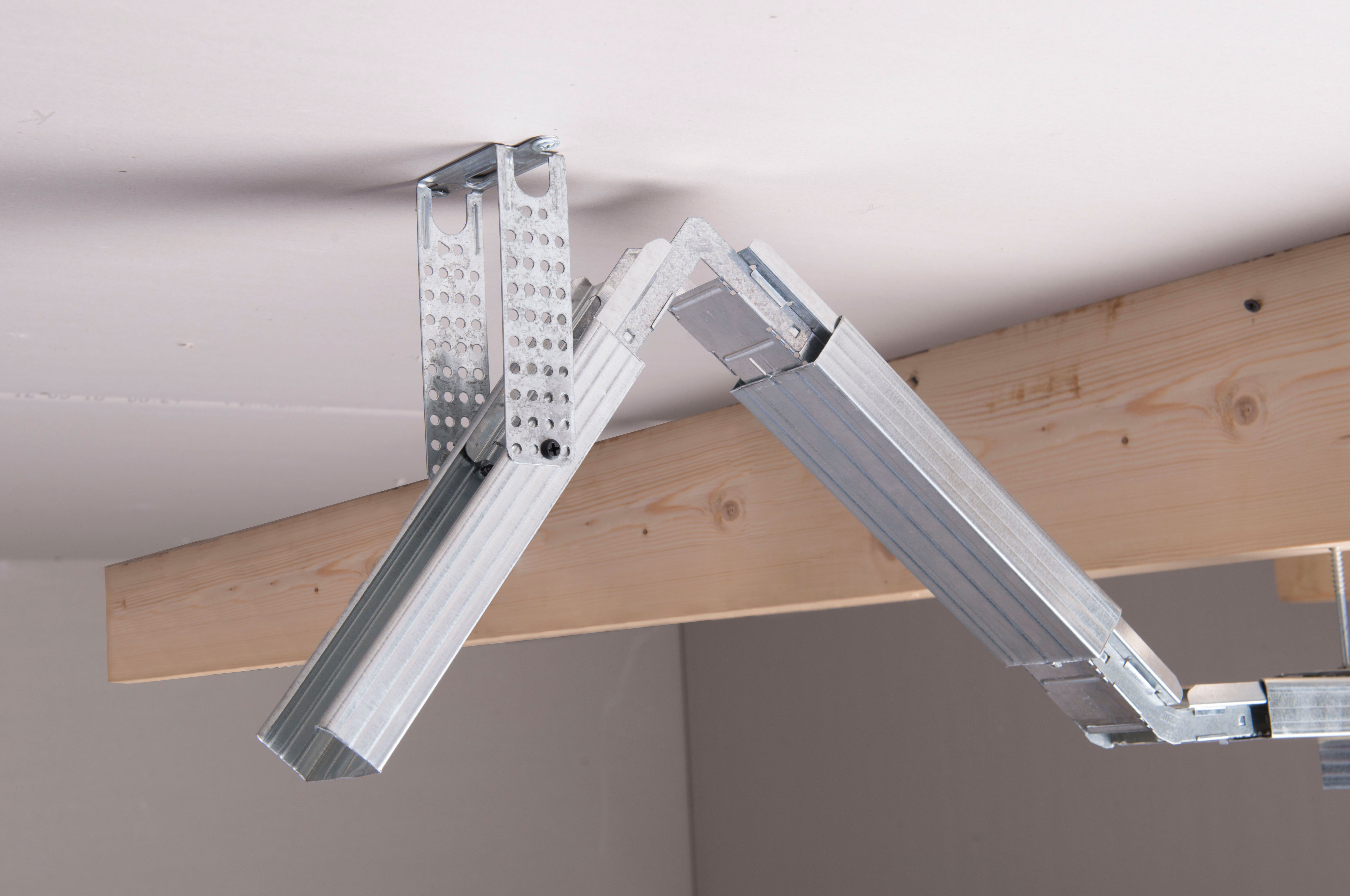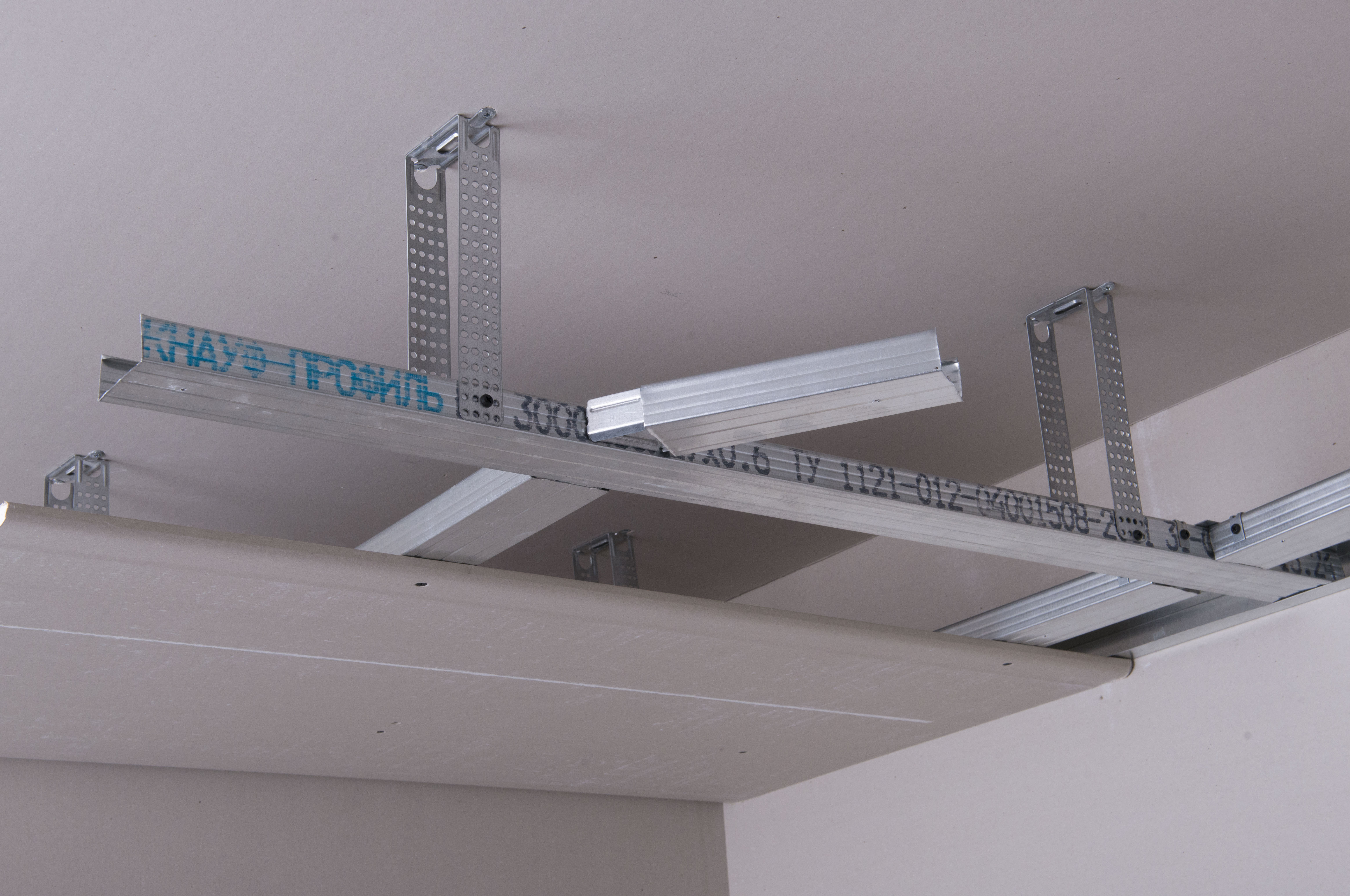 К базовому основанию подвес крепится с помощью анкерного элемента или дюбель-гвоздя, а крепление к потолочному профилю осуществляется шурупами типа LN.