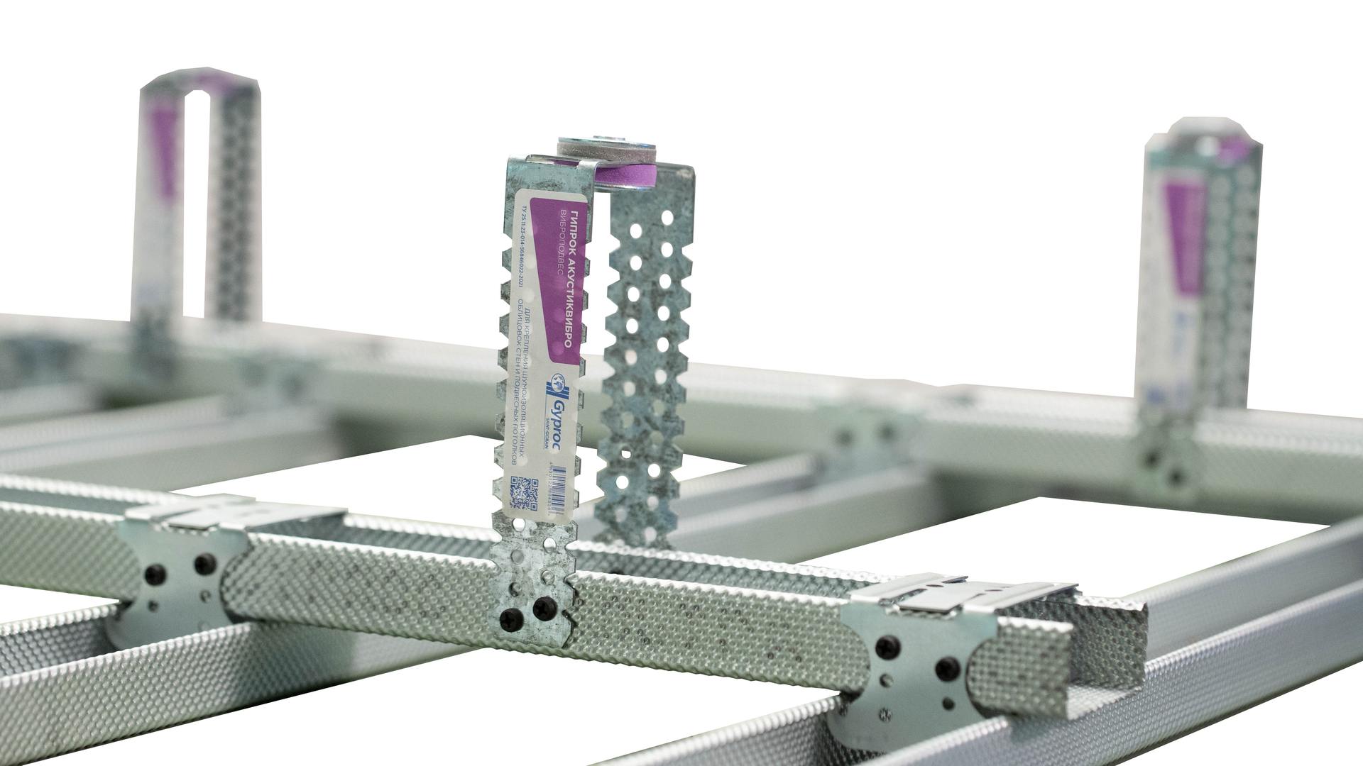 Виброподвес Vetonit (Gyproc) Акустик Вибро (Gyproc Acoustic) – подвес виброакустический, используется для крепления профилей ПП 60?27 к базовым основаниям при устройстве шумоизоляционных потолков и облицовок.