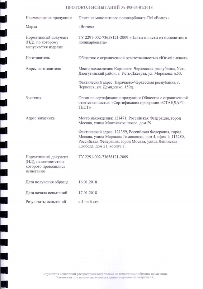 | Тип товара: | Монолитный поликарбонат |