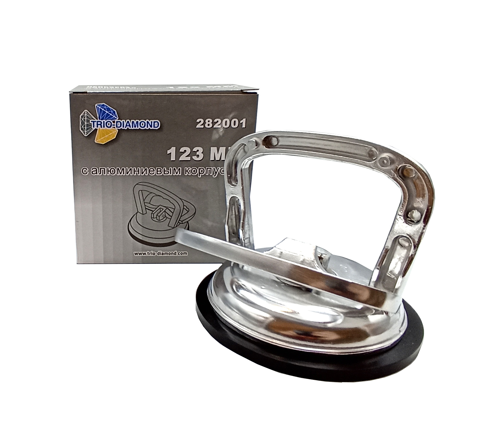 Присоска алюминиевая зажимная одинарная для плитки и стекла 123 мм Trio-Diamond 282001 - предназначена для транспортировки (подъема и переноса) непористых материалов с глянцевой поверхностью, таких как мрамор, гранит, стекло, керамогранит и т.д