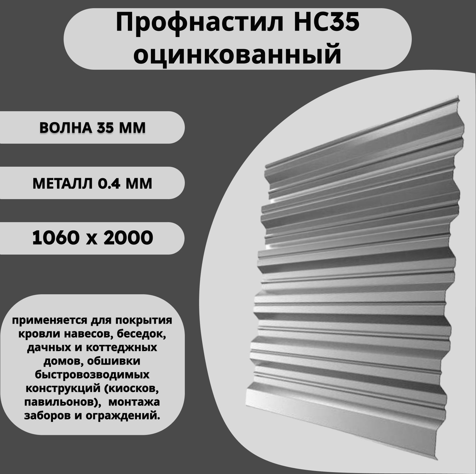Профнастил оцинкованный НС35 0,5 х 1060 х 2000мм