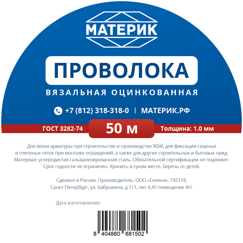 Проволока вязальная 1,0 х 50м оцинкованная. Беру в Материке, всегда в наличии. Гибкая,чистая, без ржавчины. Рекомендую.