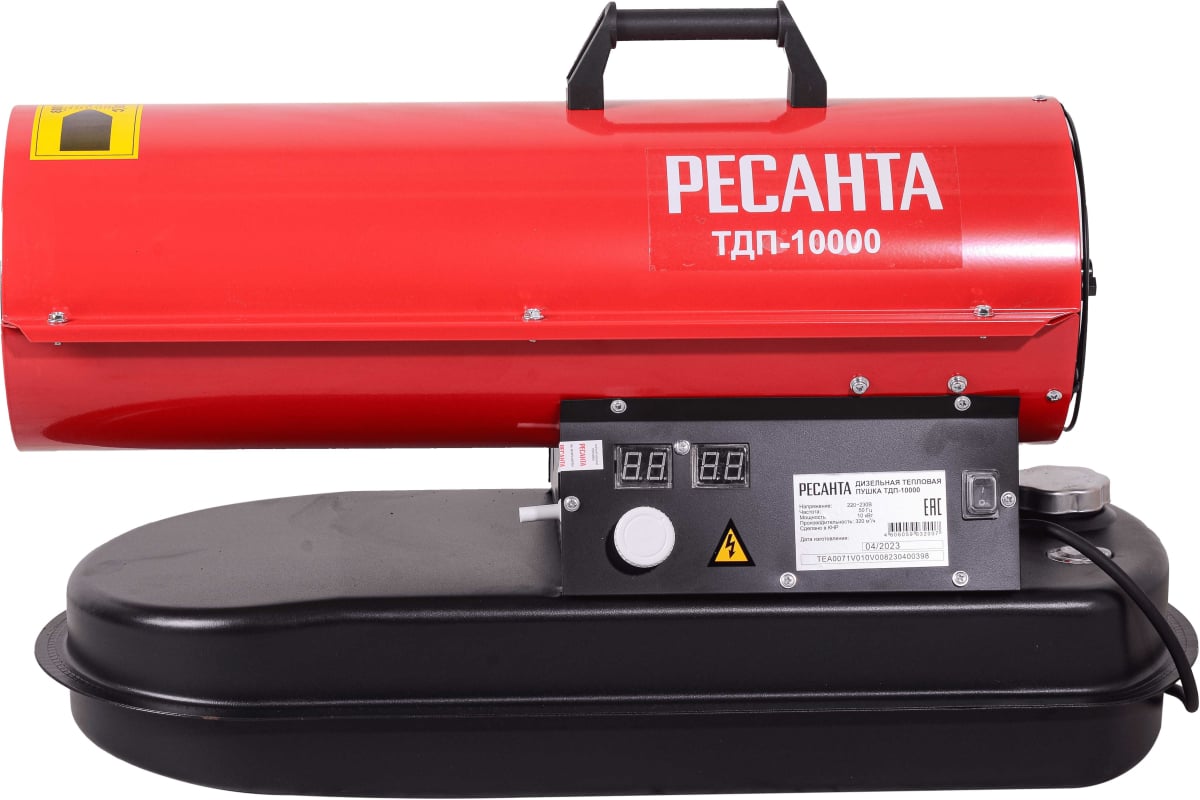 Дизельная тепловая пушка РЕСАНТА ТДП-10000 - функциональный обогреватель с прямым нагревом для отопления складских, строительных и других помещений. Данная модель может работать как на солярке, так и на отработанном масле или керосине, что обеспечивает экономичность оборудования. Удобна в перемещениях и установке, благодаря своим компактным размерам. Надежна – практически не ломается, а ремонт в случае поломки легко осуществить. Есть защита от угасания пламени и от воспламенения.
