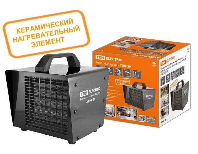 Пушка тепловая электрическая ТПК-2К 2000 Вт в квадратном корпусе применяется для дополнительного обогрева жилых, рабочих, торговых, офисных и промышленных зон.