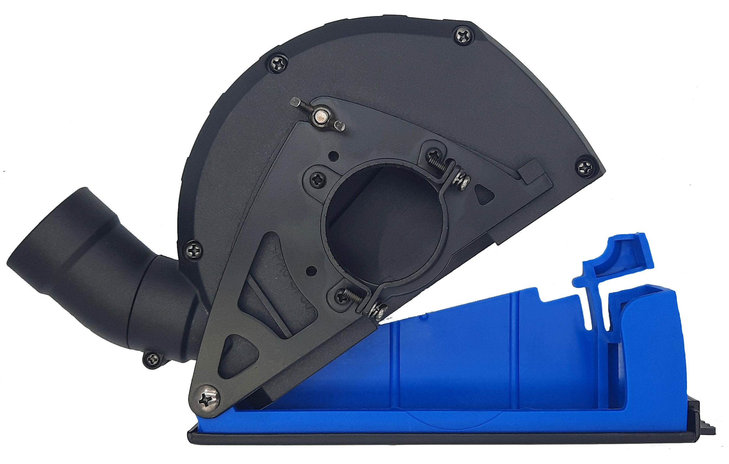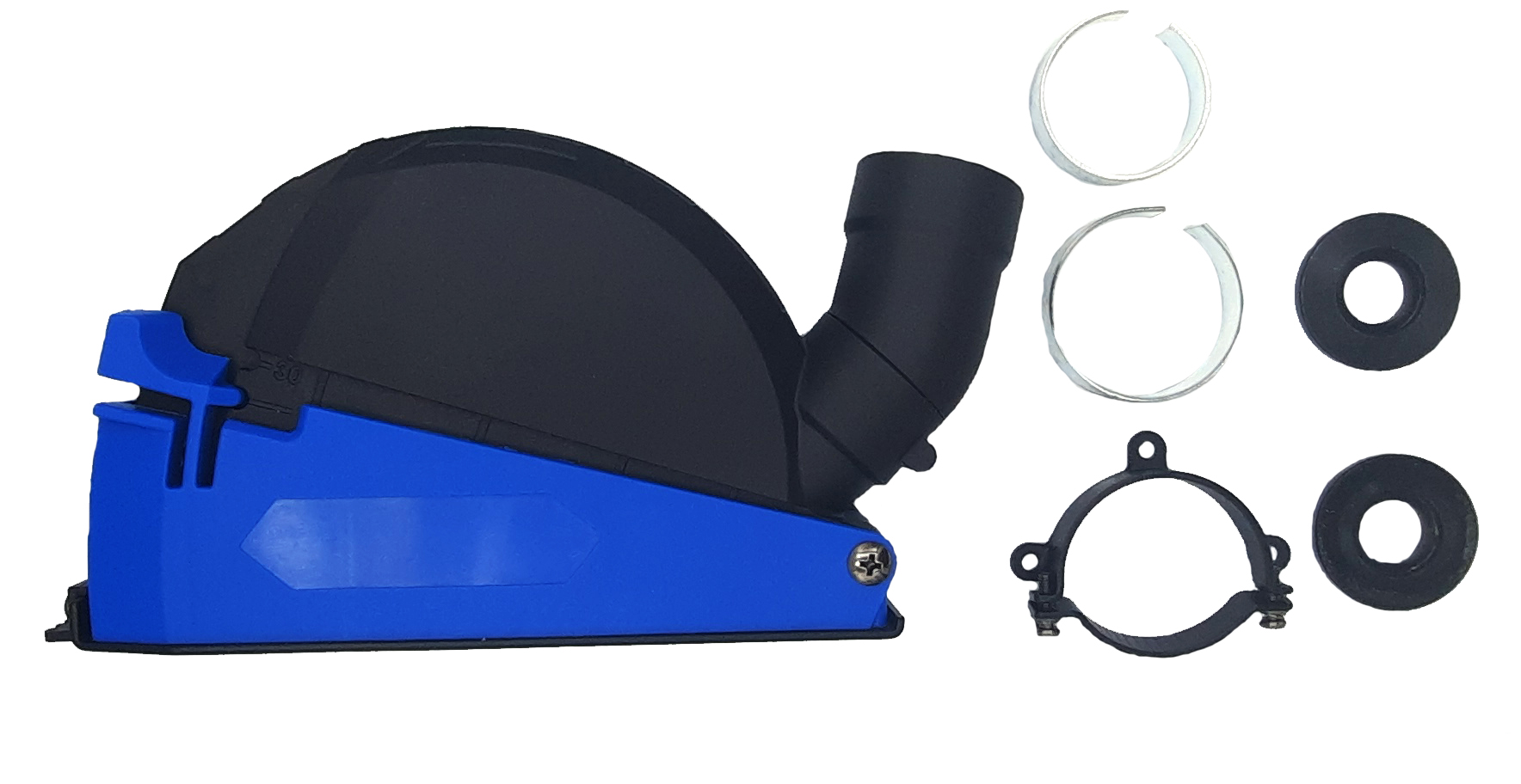 Универсальный вытяжной пылеудалитель предназначен для установки на 125 углошлифовальную машинку (УШМ). Применяется для отрезных работ и штробления с одним или двумя алмазными отрезными дисками. Обеспечивает эффективное отведение бетонной, кирпичной и каменной пыли. Крепление с проставочными кольцами позволяет использовать пылеудалитель с УШМ и пылесосами различных производителей.