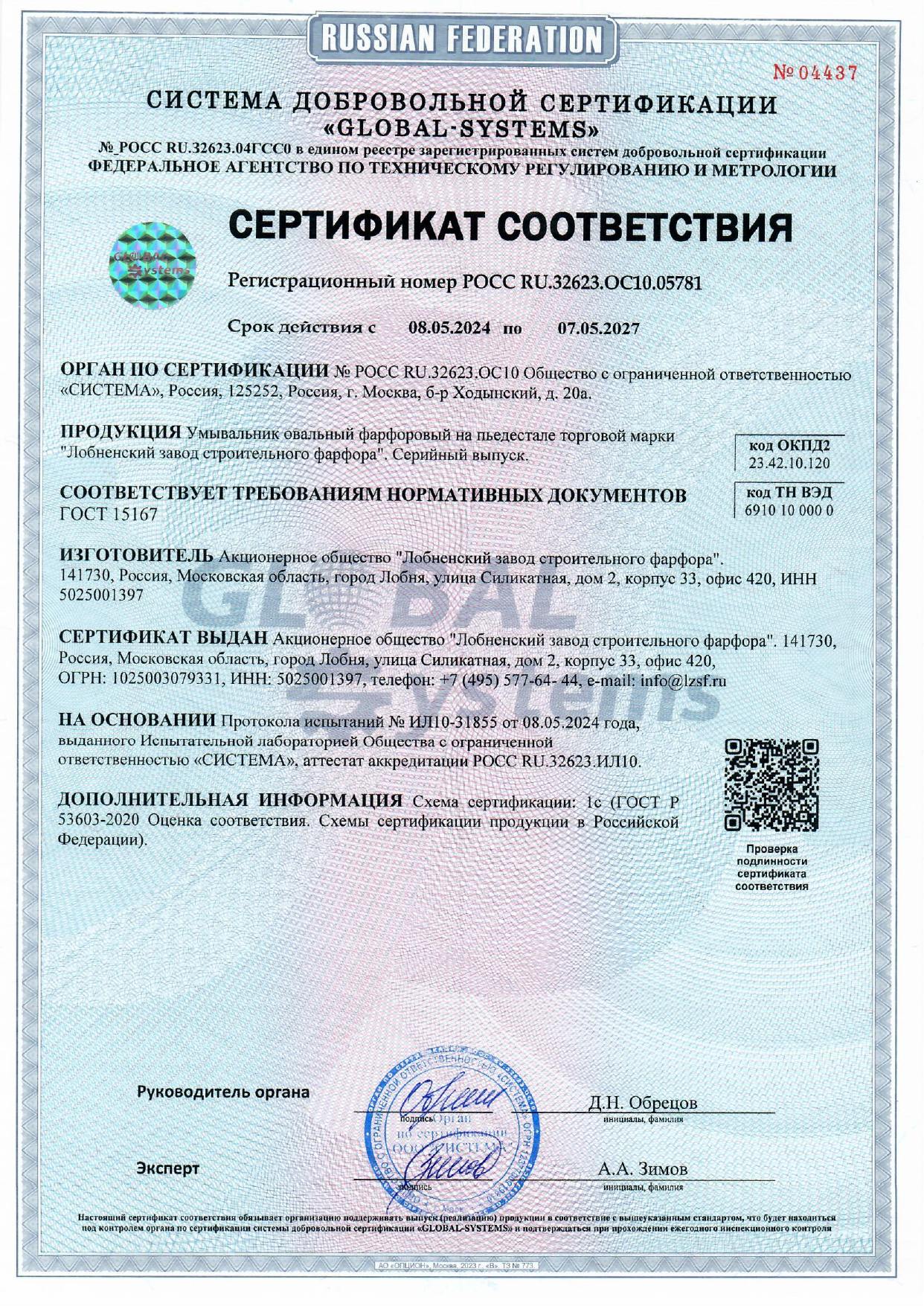 Умывальник имеет современный дизайн. Устанавливается на пьедестал или на кронштейны 240мм (имеются отверстия для крепления в стене). Товар сертифицирован и выполнен в соответствие с ГОСТ 30493-17, ГОСТ 21485 – 2016.