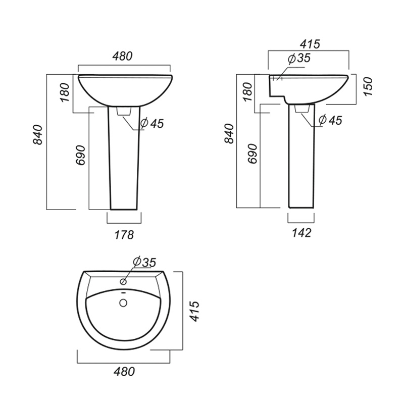 Умывальник имеет современный дизайн. Устанавливается на пьедестал или на кронштейны (имеются отверстия для крепления в стене). Товар сертифицирован и выполнен в соответствие с ГОСТ 30493-17, ГОСТ 21485 – 2016.