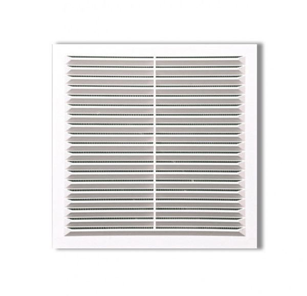 Решетка вентиляционная наклонная с сеткой и рамкой 250 х 250мм выполнена из высококачественного АБС-пластика, устойчивого к УФ-лучам и другим внешним воздействиям.