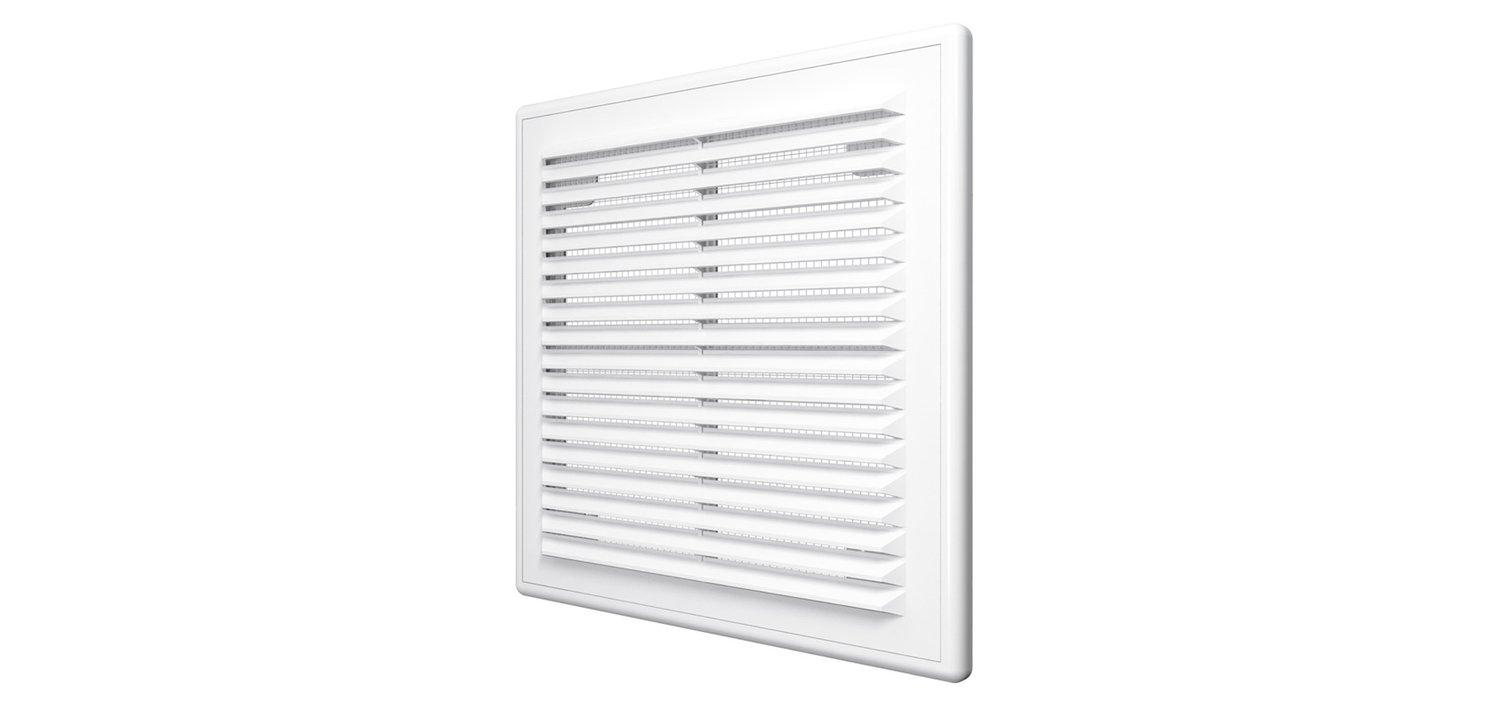 Решетка крепится с помощью шурупов или клея. Решетка вентиляционная имеет наклонные фиксированные жалюзи, которые направляют поток воздуха. Решетка вентиляционная имеет разъемные решетки.