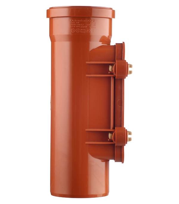 Фирменная ревизионная муфта Ostendorf диаметром 110 мм для наружного применения. Изготовлена из особо прочного полипропилена с минеральными добавками, обеспечивающего полную совместимость с системами Ostendorf.