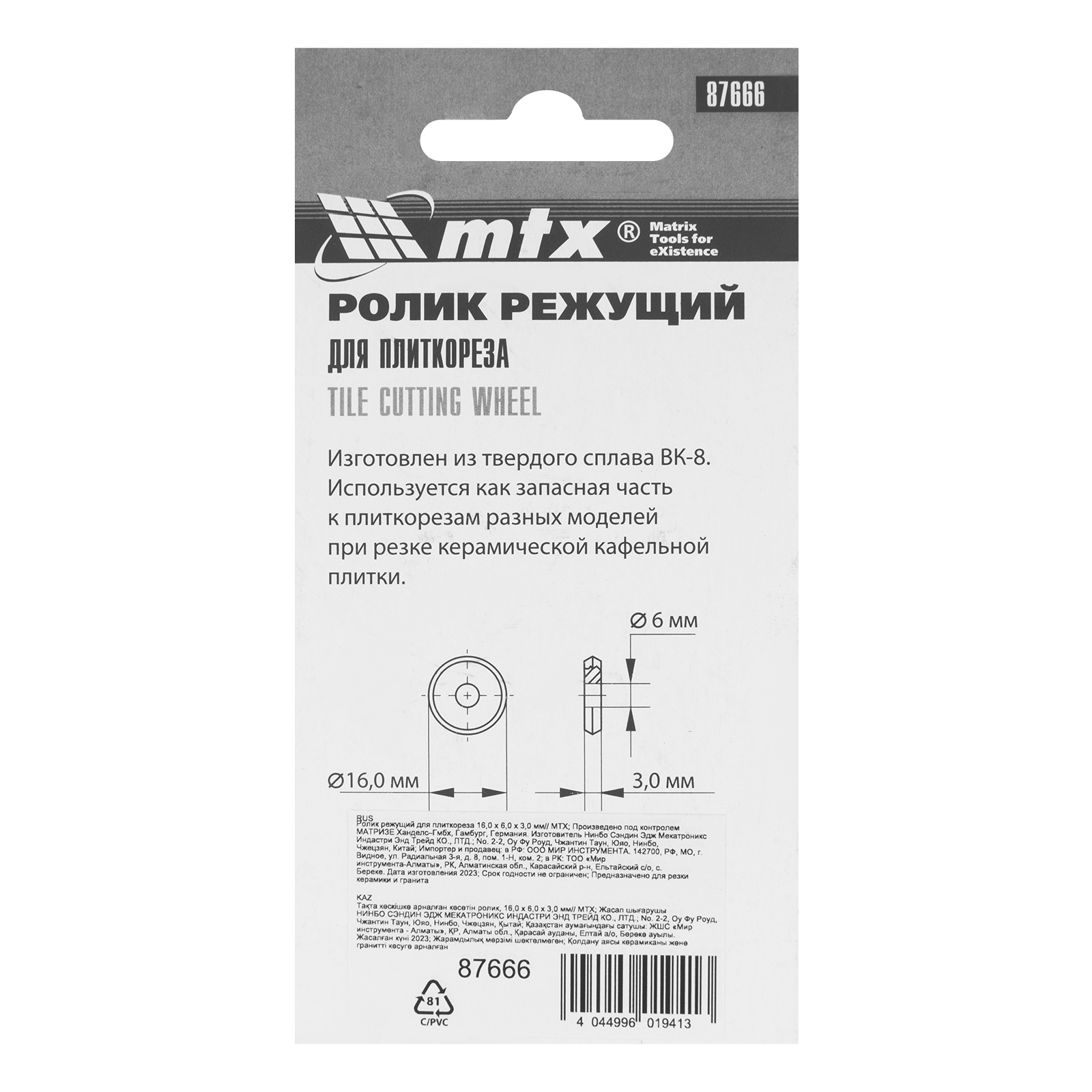 Режущий ролик размером 16,0 х 6,0 х 3,0 мм — универсальный сменный элемент, использующийся как запасная и расходная часть к плиткорезам разных моделей. Он быстро и аккуратно режет керамическую плитку любого типа и керамогранит, благодаря качественной заточке.