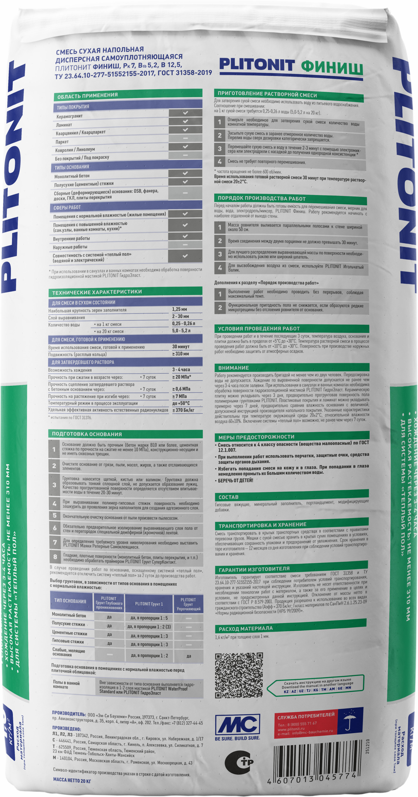 | Объем упаковки, л/кг: | 20 |