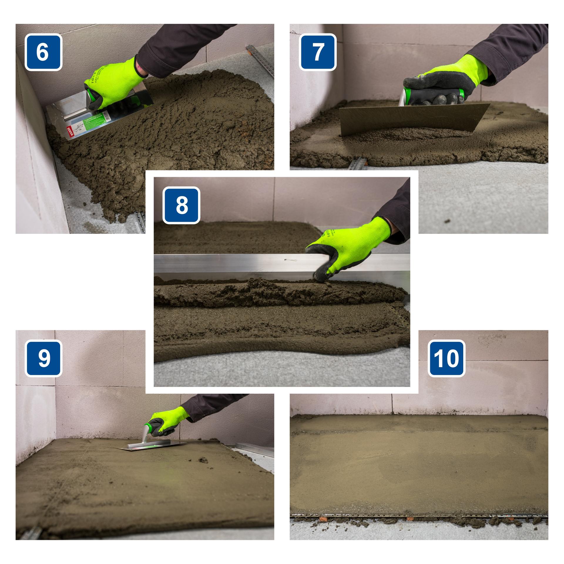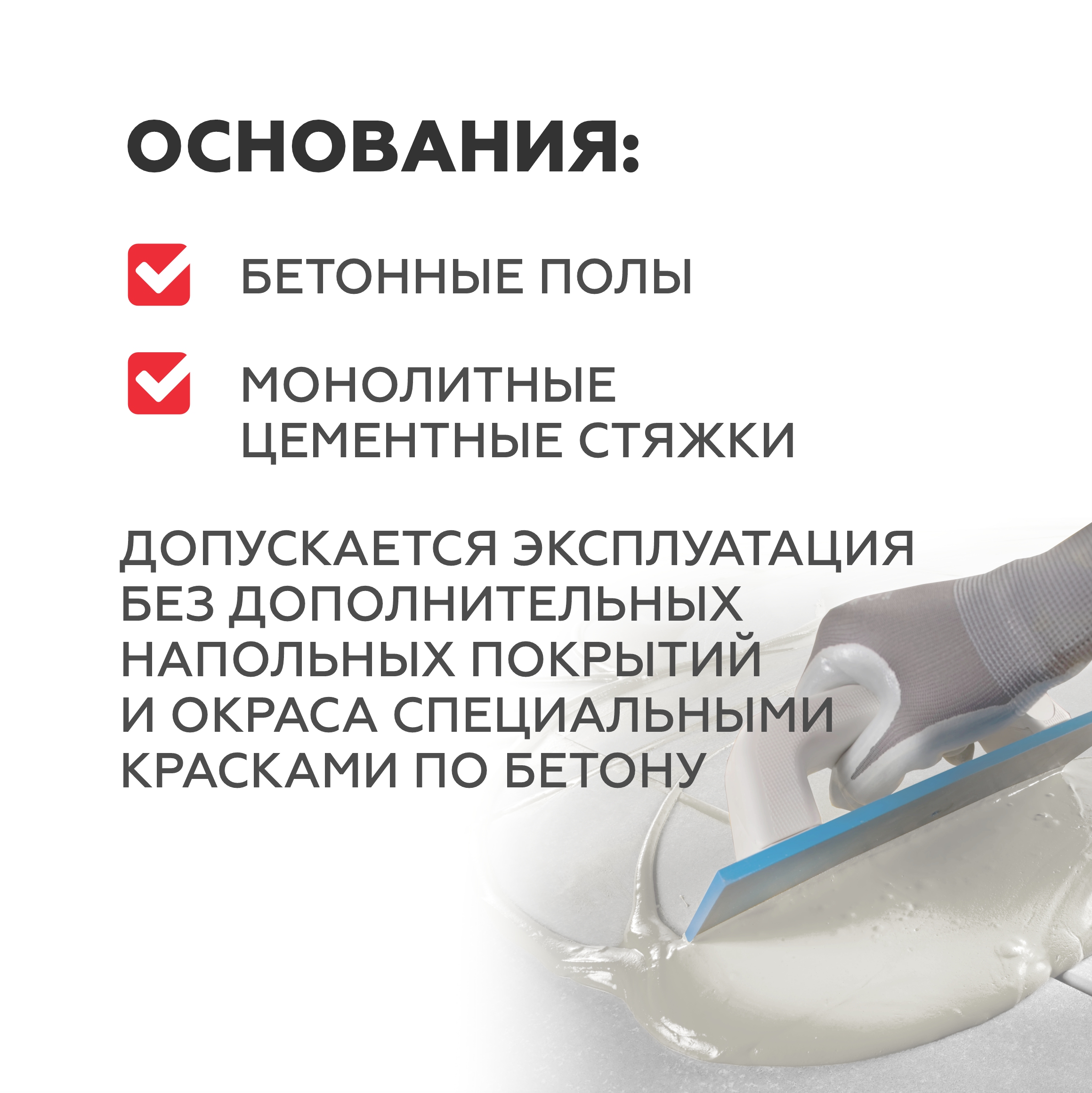 - Для получения качественного монолитного слоя – производите окончательное выравнивание и заглаживание стыков в течение 20 минут