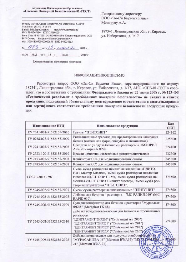 Готовую смесь необходимо использовать в течение 40 минут после приготовления, при температуре смеси 20±2°С