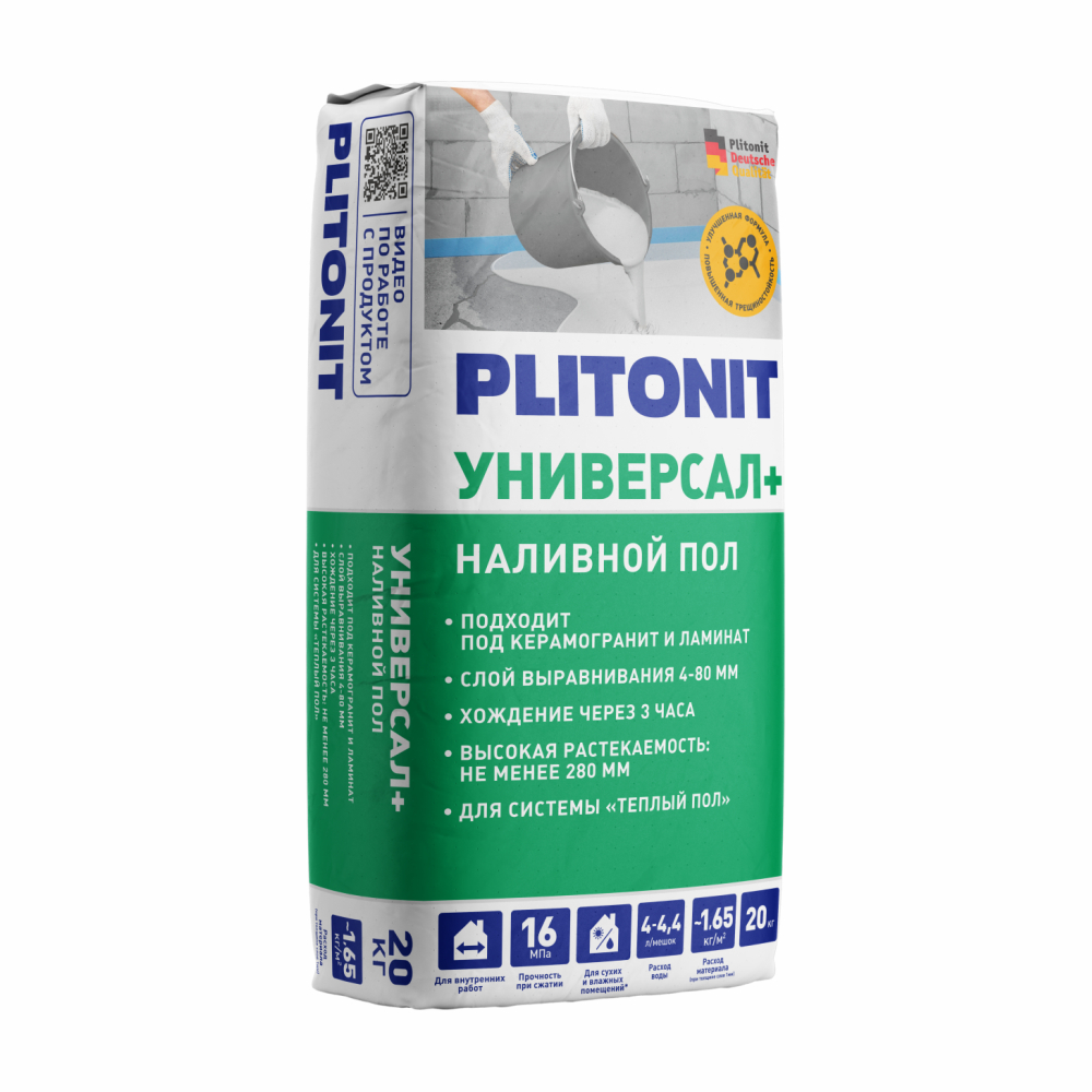 Качественный ровнитель, как и все сухие смеси от Плитонит. Постоянно использую его в работе, подходит под любые покрытия и можно применять с теплым полом. Наносится легко, хорошо растекается, не трескается.