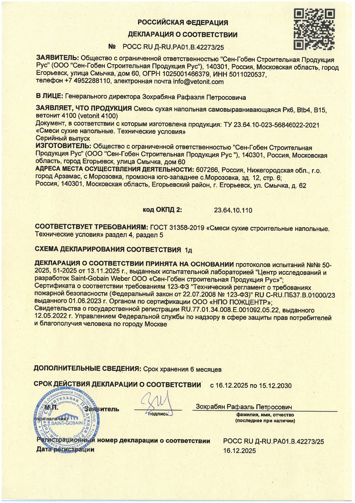 | Основа: | Цемент |