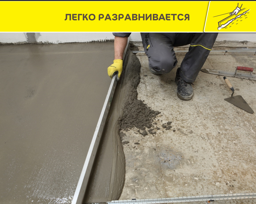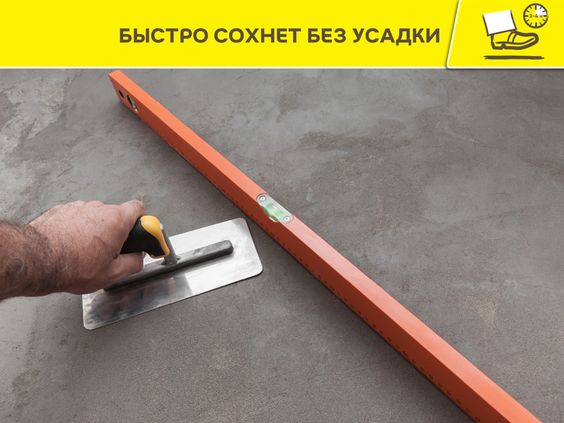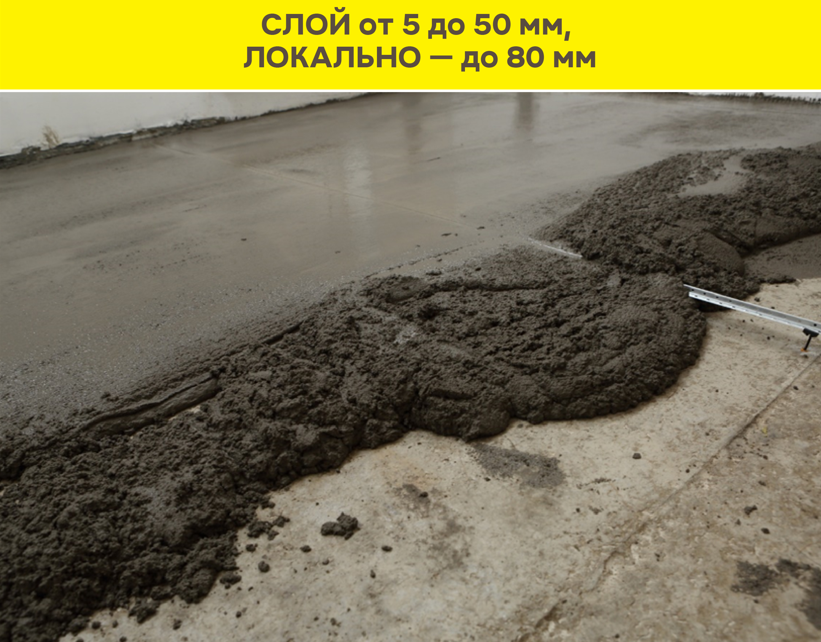 - Толщина слоя сплошное выравнивание - 5-50мм, локальное - до 80 мм.