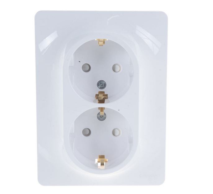 Розетка Systeme Electric Glossa двухместная с заземлением и шторками белый