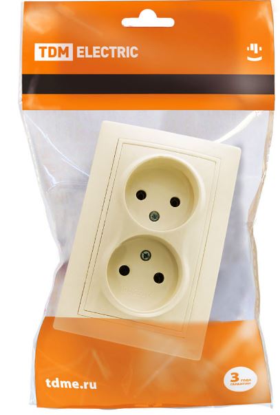 Розетка TDM ELECTRIC Таймыр двухместная без заземления слоновая кость