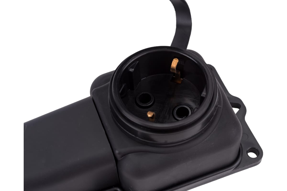 Корпус переносной розетки изготовлен из каучука, который является диэлектриком. Корпус оснащен специальной защитной крышкой, которая не допускает попадания пыли и влаги внутрь розетки. Заземляющий контакт обеспечивает дополнительную защиту от удара электрическим током.