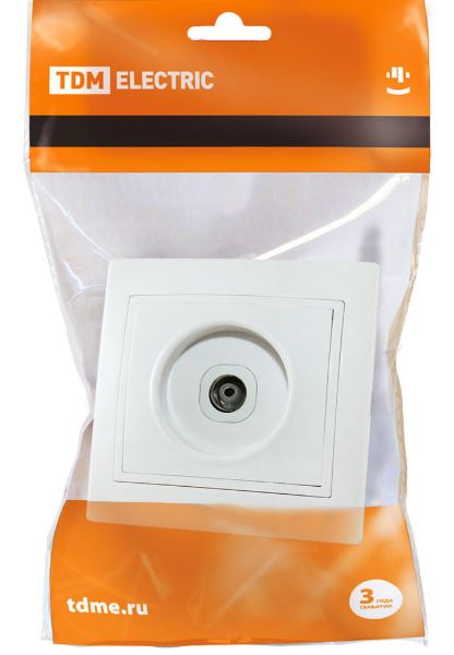 Розетка скрытой установки ТАЙМЫР TDM (арт. SQ1814-0022) оконечная телевизионная предназначена для подключения телевизора к телевизионной сети, спутниковой сети или радиосети.