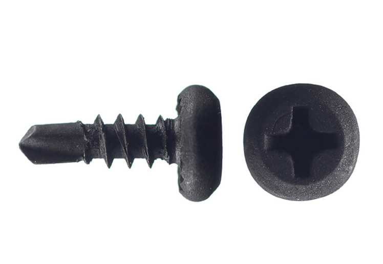Саморезы по металлу с буром предназначены для крепления металлических листов толщиной до 2мм без предварительного сверления к металлическому основанию. Имеют полуцилиндрическую головку с крестообразным шлицем PH2 (Philips N2), резьбу с мелким шагом и наконечник в виде бура. Под головкой саморез имеет насечки, препятствующие самопроизвольному выкручиванию. Производятся из углеродистой стали с последующим фосфатированием для защиты от коррозии. Саморезы имеют полную резьбу.