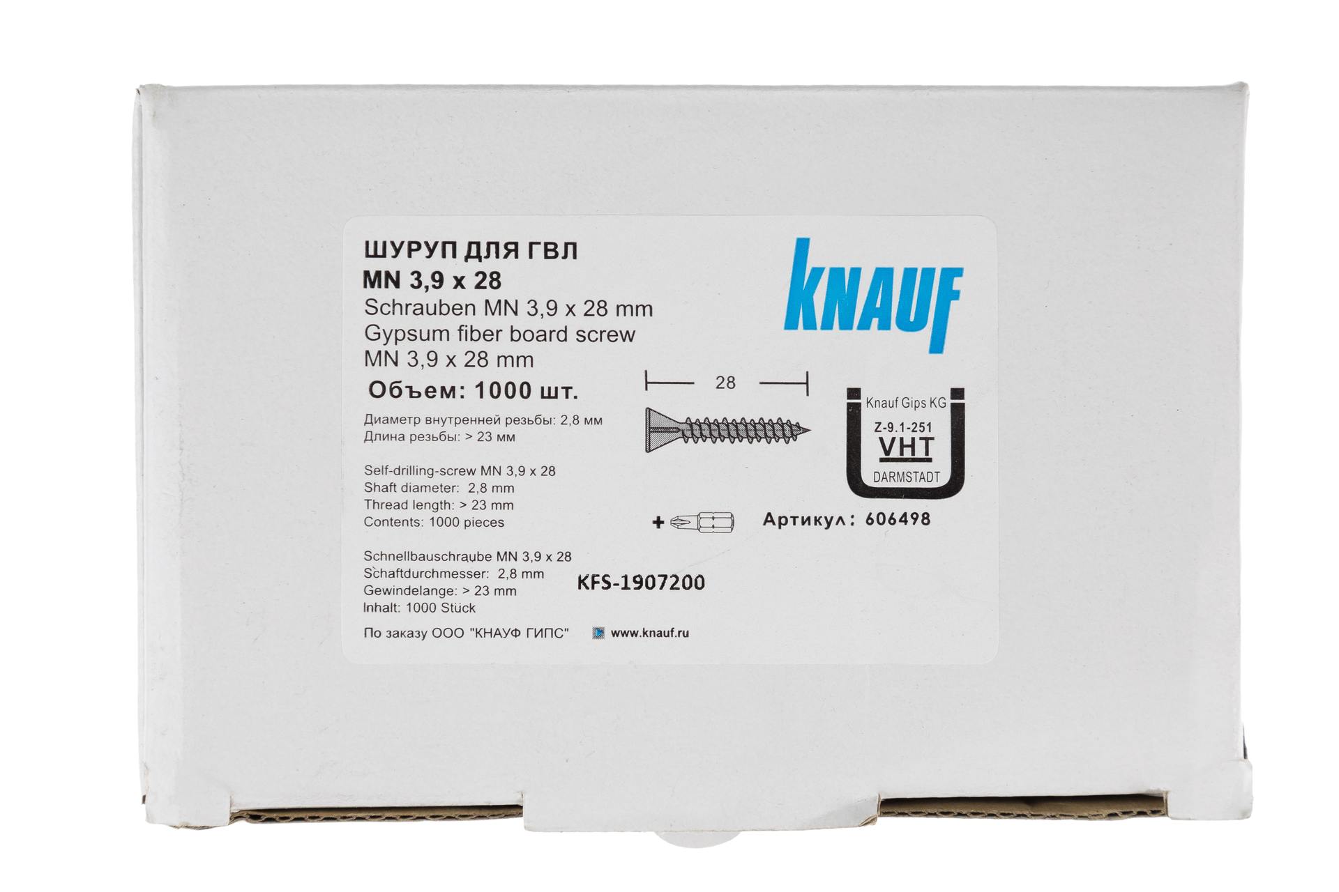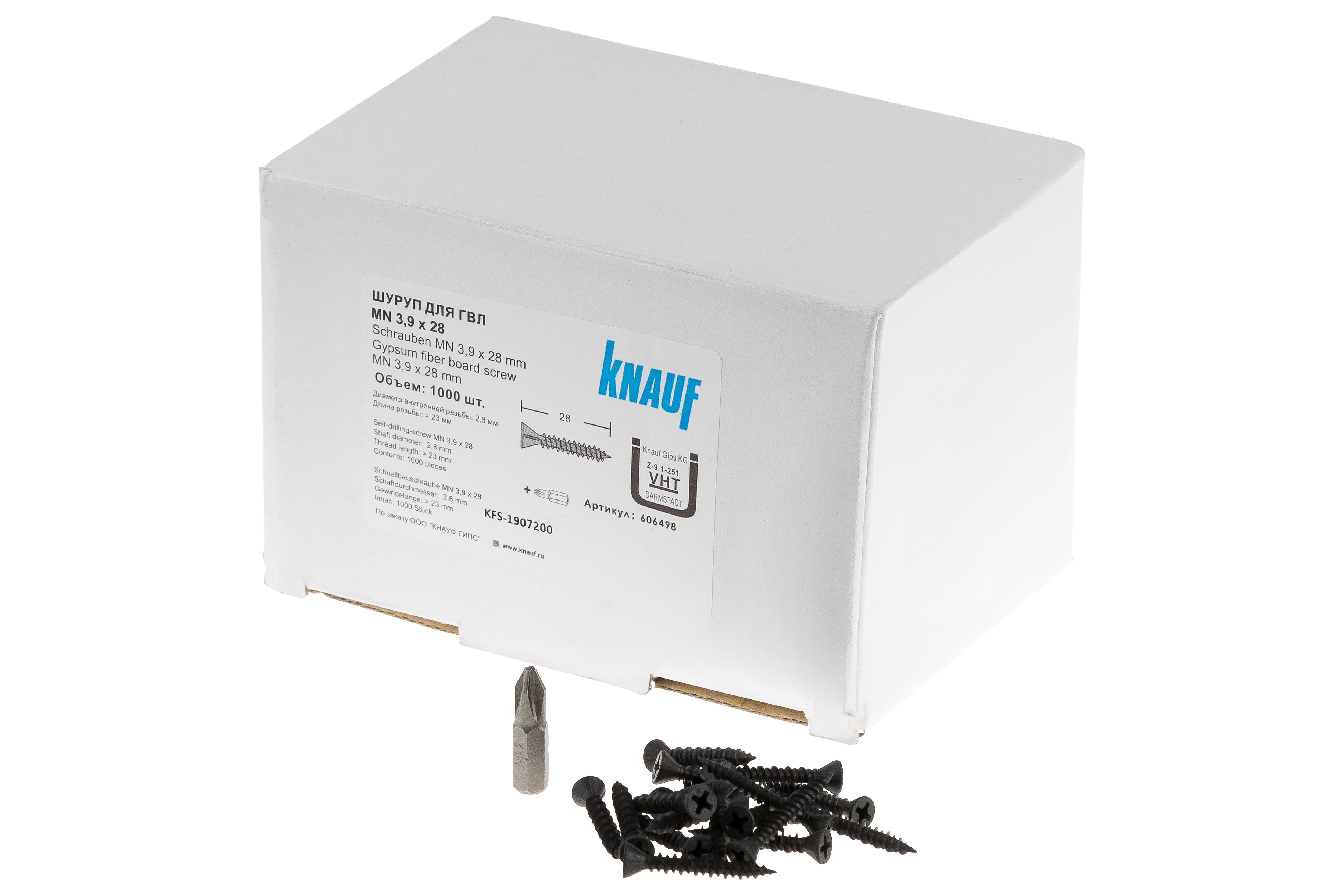 Саморезы КНАУФ для ГВЛ MN 3,9x28 мм 1000 шт/упак с битой PH2