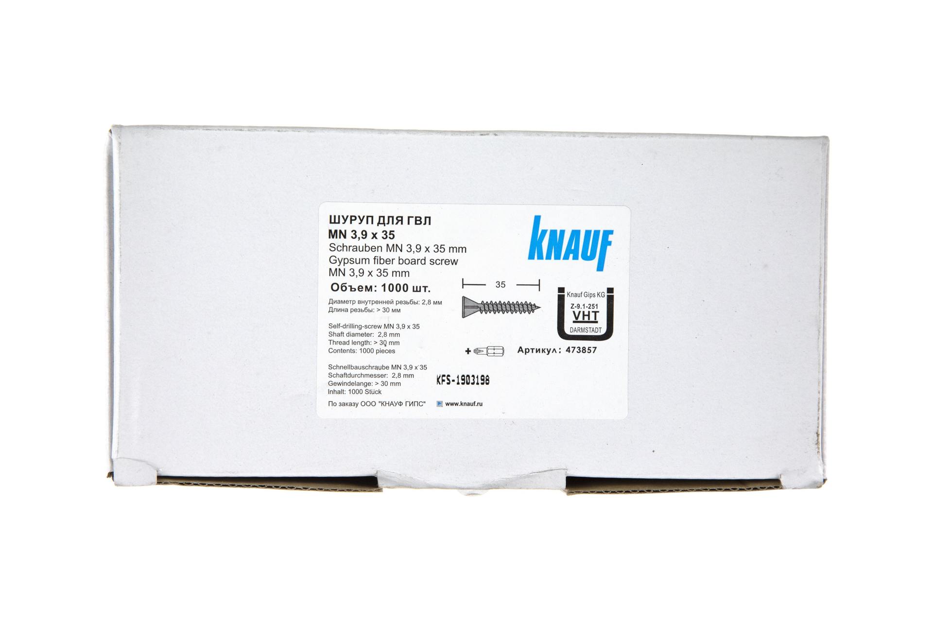 Саморезы КНАУФ для ГВЛ MN 3,9x35 мм 1000 шт/упак с битой PH2