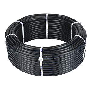Полиэтиленовые трубы применяются в хозяйственно-питьевой отрасли, также могут быть использованы в канализационных системах и для защиты кабелей. На наружном слое трубы маркером нанесены отличительные полосы синего цвета, означающие, что труба применяется в системах ХВС.