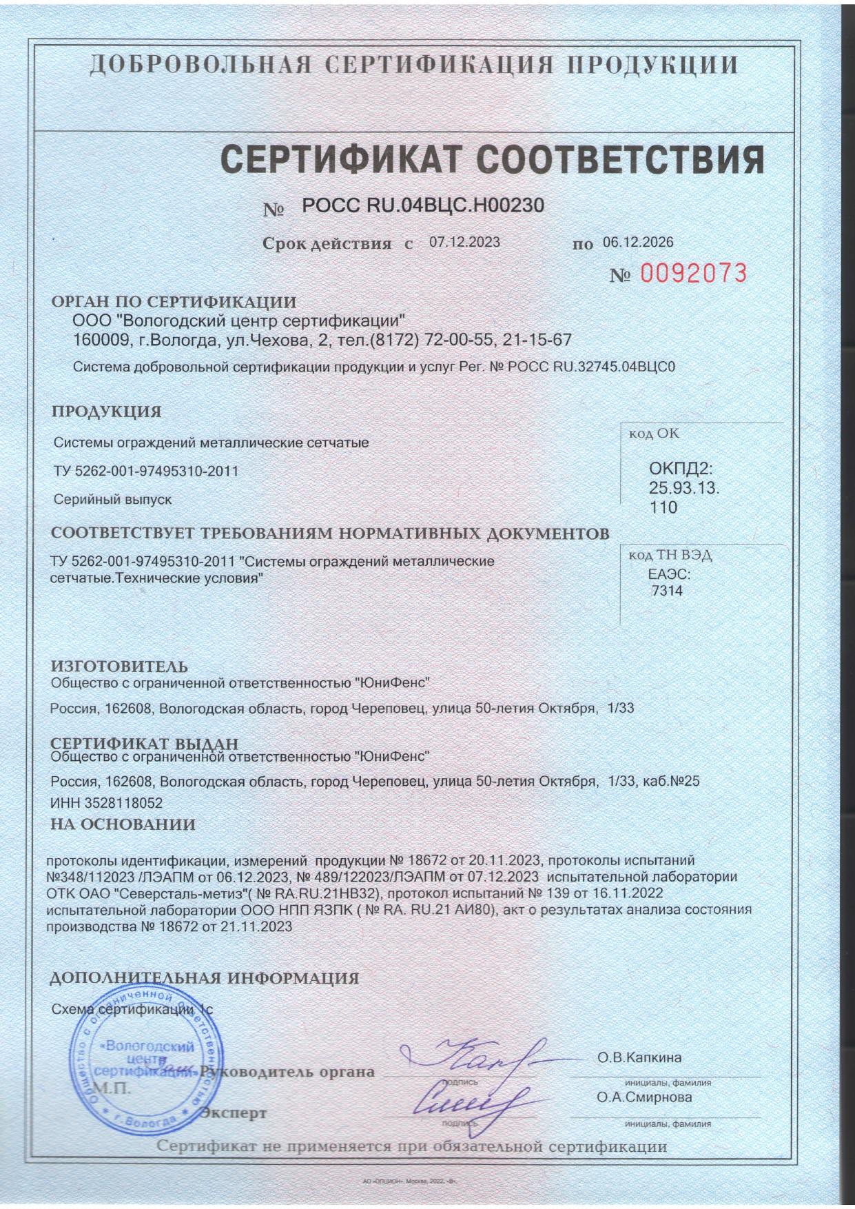Секции сварены из оцинкованной проволоки диаметром 3мм и покрыты слоем ПВХ и имеют 4 ребра жесткости.
