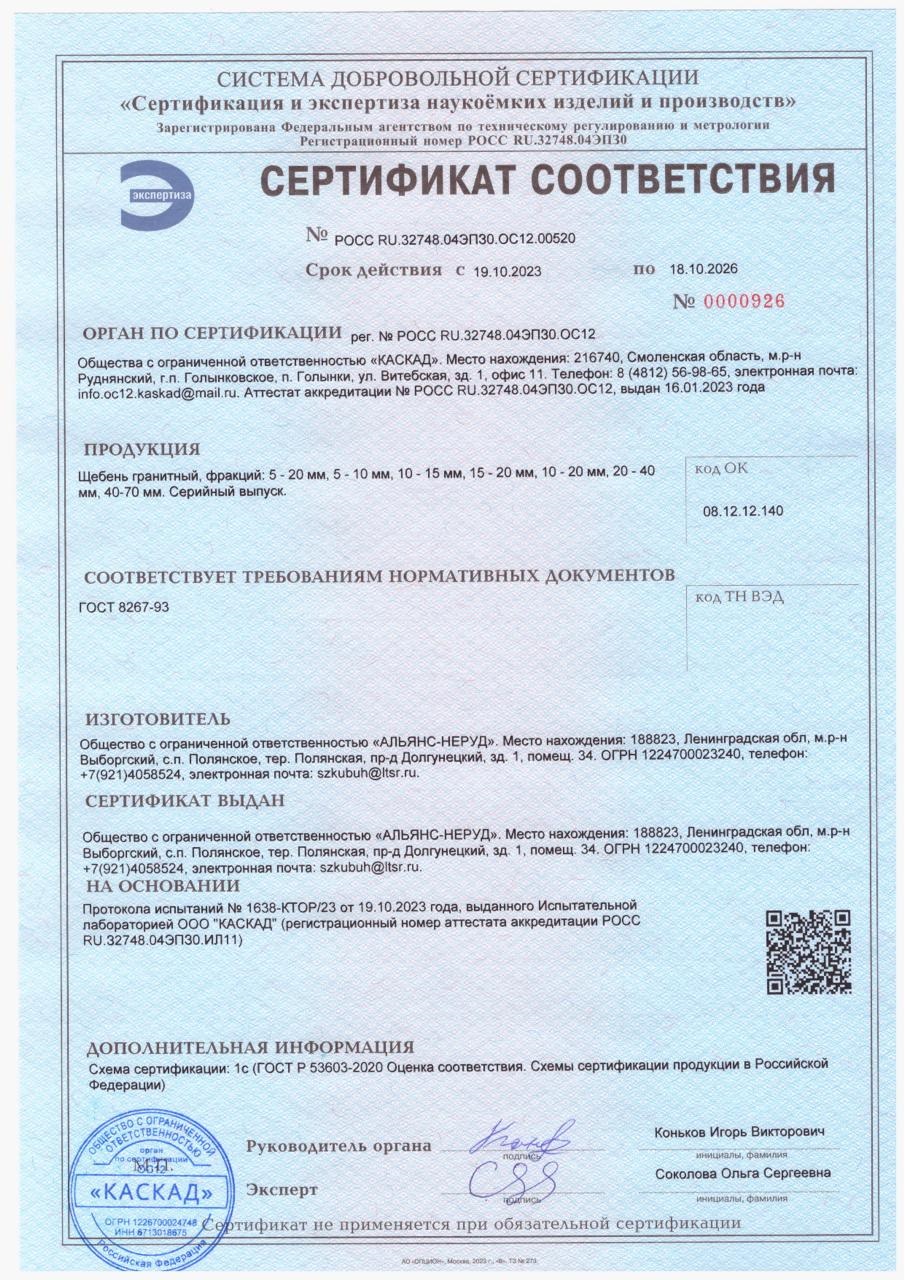 | Тип товара: | Щебень |