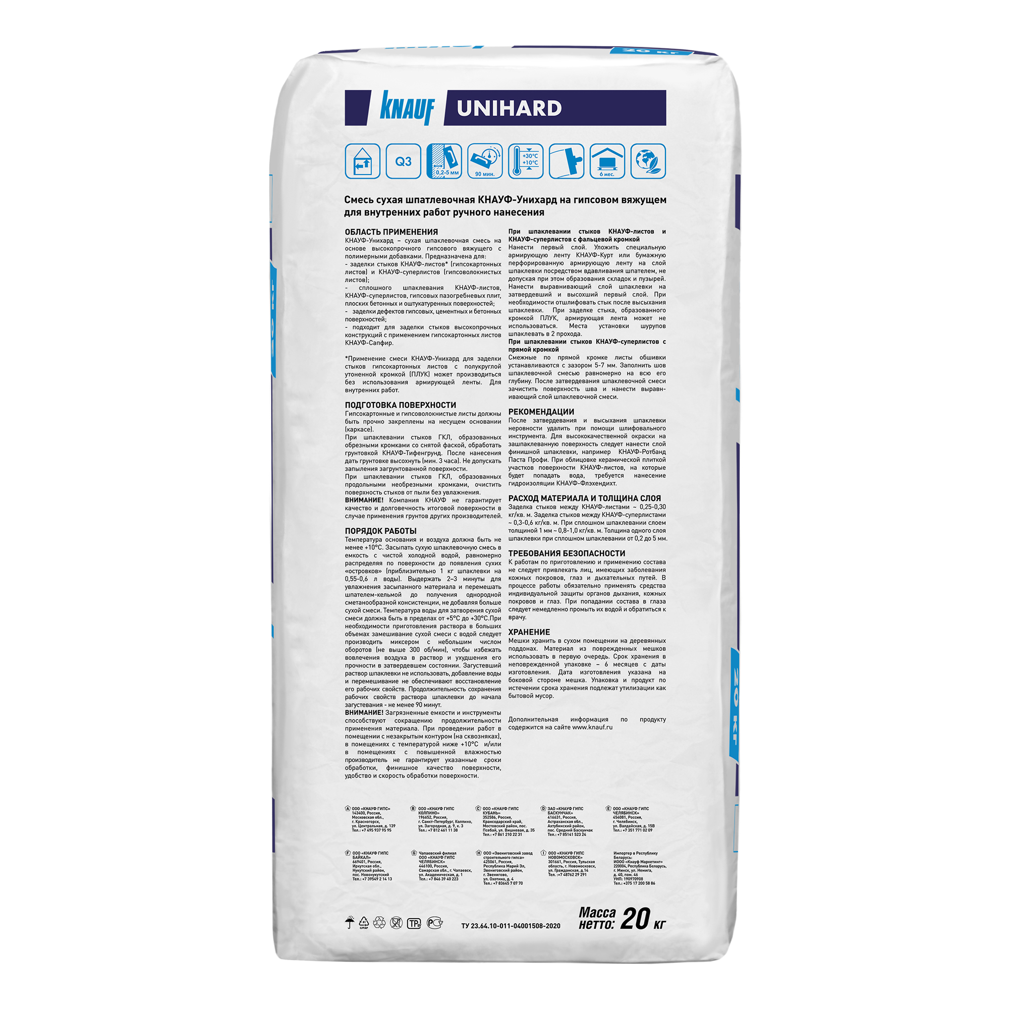 Шпаклевка гипсовая КНАУФ Унихард 20 кг – сухая шпаклевочная смесь на основе высокопрочного гипсового вяжущего с полимерными добавками. Новинка от компании КНАУФ.