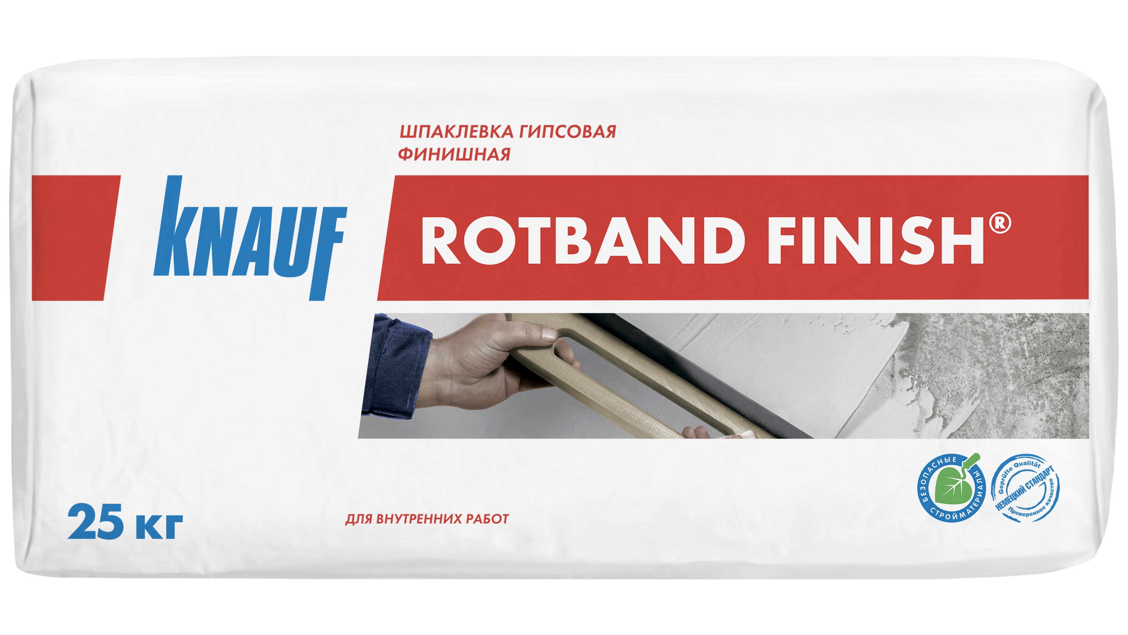 Шпаклевка КНАУФ Ротбанд финиш гипсовая 25кг - сухая шпаклевочная смесь на основе гипса и полимерных добавок.