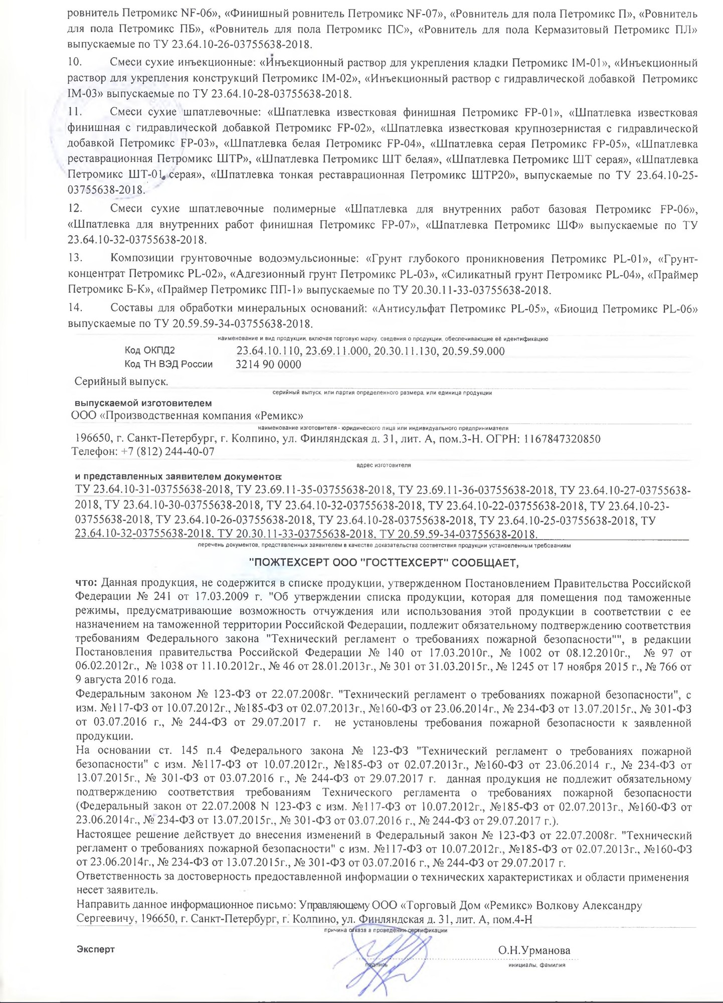 Техническое название: Смесь сухая шпатлёвочная на цементном вяжущем 240/5,0 ГОСТ 33699-2015 |