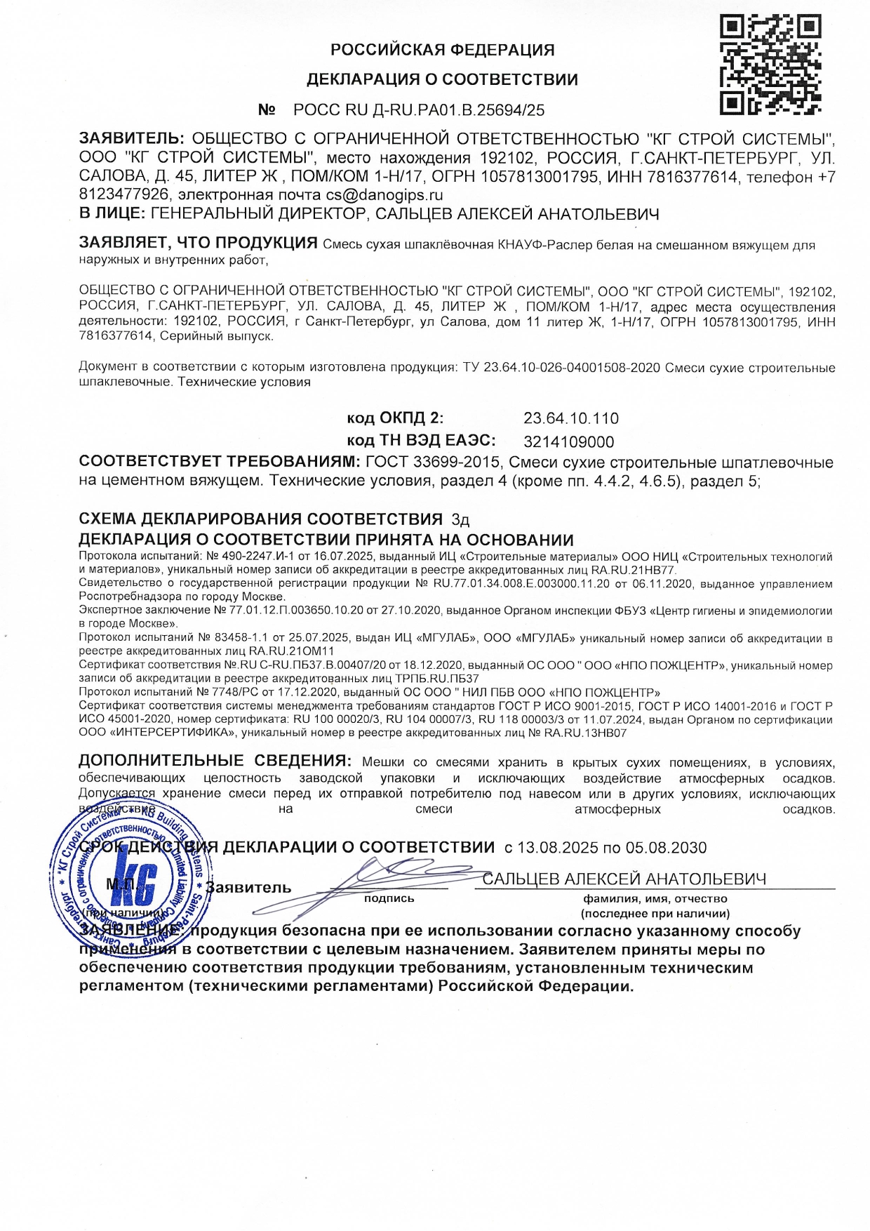 | Состав: | Комплексое вяжущее, полимерные добавки |